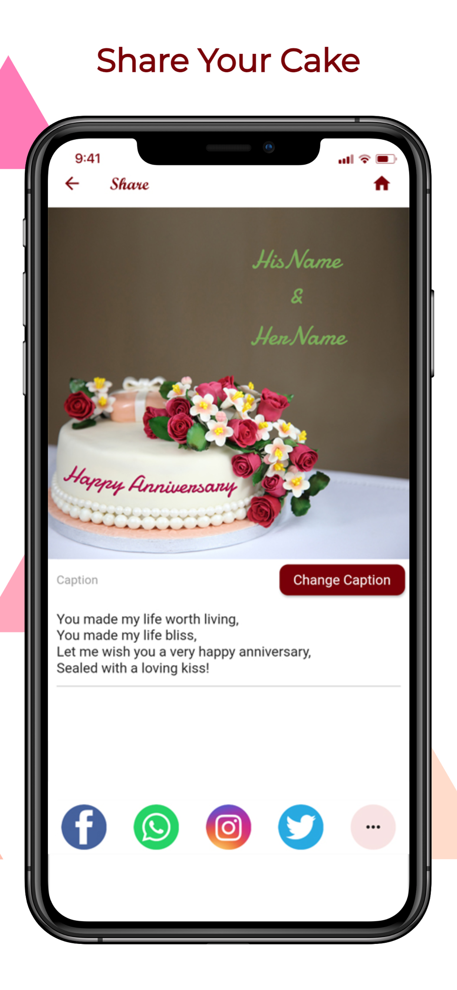 - In the Future, you can easily use this stored Name Photo On the Anniversary Cake image and share it via social link.