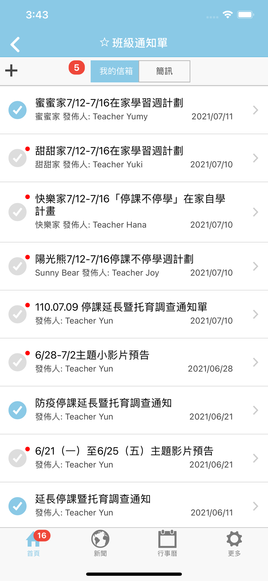 2. 班級通知單:接收班級教師或學校發送的訊息。