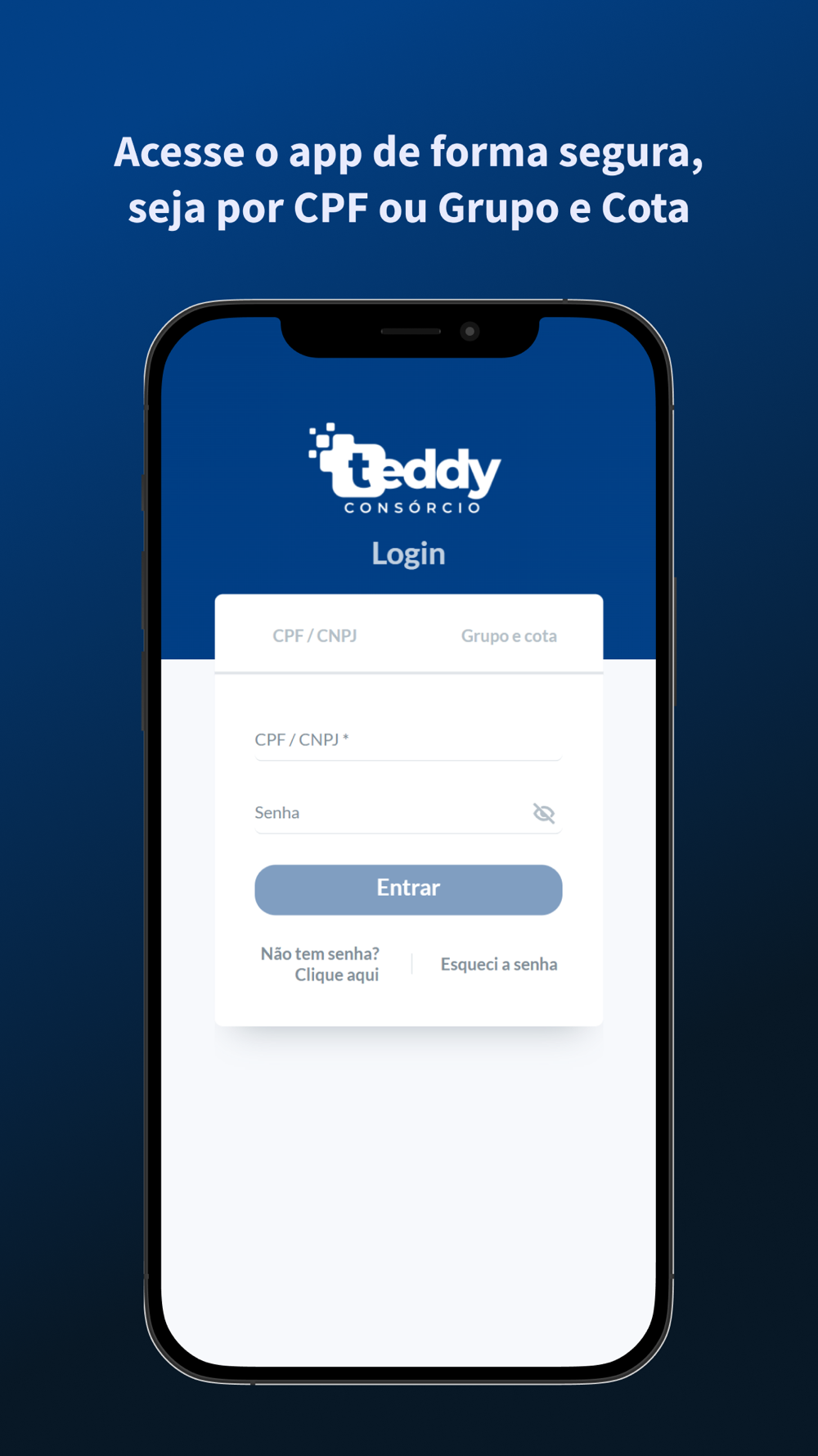 Mais agilidade ao alcance das suas mãos. Com o aplicativo do Consórcio Teddy você confere todas as informações sobre a sua cota com segurança e praticidade.
