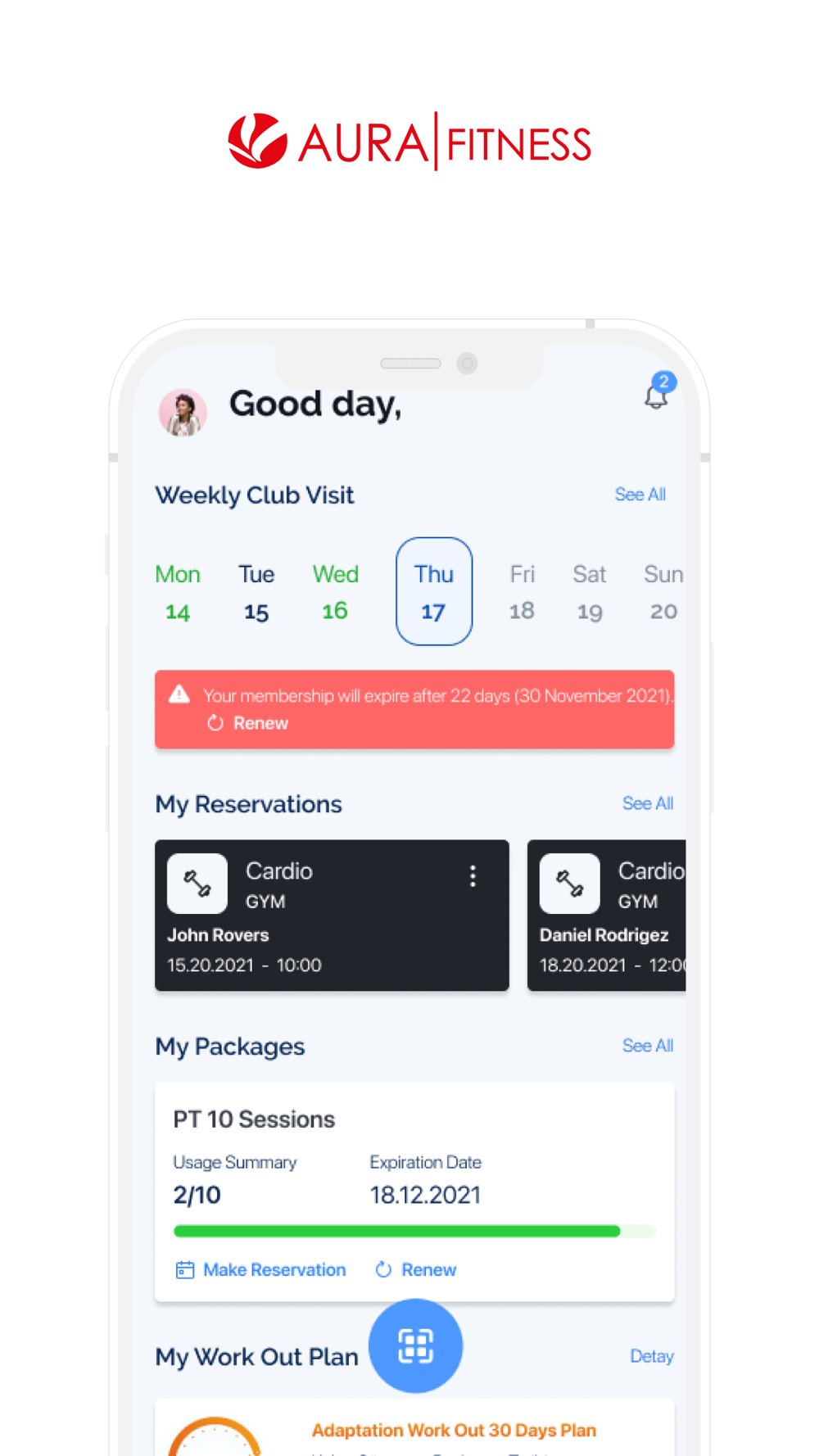 Aura Fitness bir SPA & GYM üyeliğinizi yönetmek için kullanılan bir IOS uygulamasıdır. Müsteri Programları, Ölçümleri, Rezervasyon Alma, Hizmet Satın Alma, Stüdyo Ders İşlemlerini gerçekleştirebilen Senkron Yazılım tarafından üretilmiş bir IOS uygulamasıdır.
