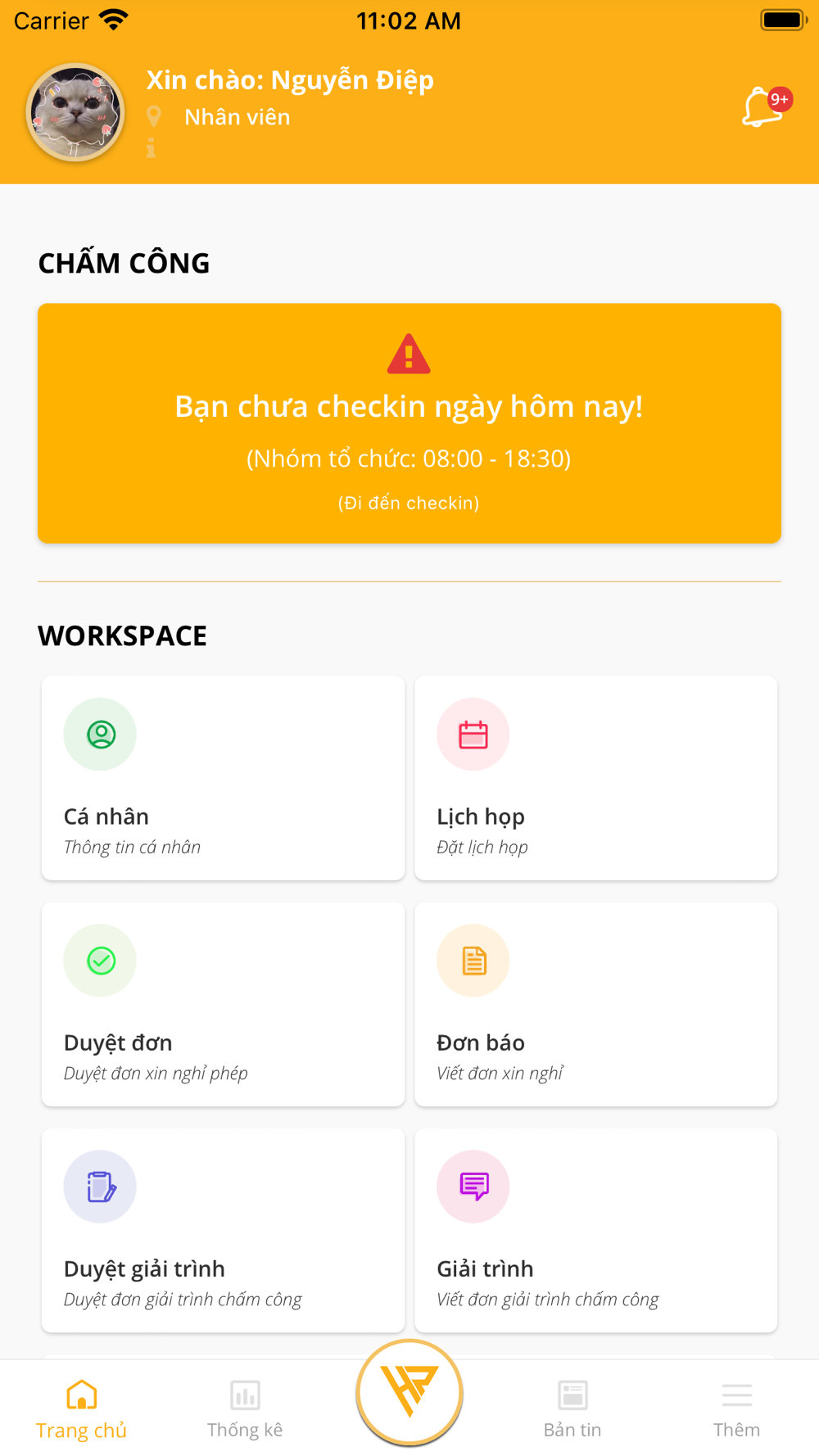 - Chấm công ( Đa dạng phương thức chấm công như: Chấm công qua mã QR Code, qua Wifi, thông qua lộ trình di chuyển hoặc chấm công từ xa,... )