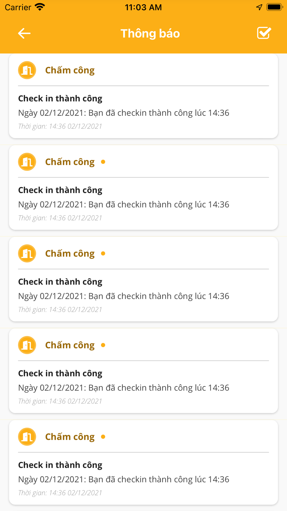 - Thống kê số nhân viên đã chấm công, chưa chấm công