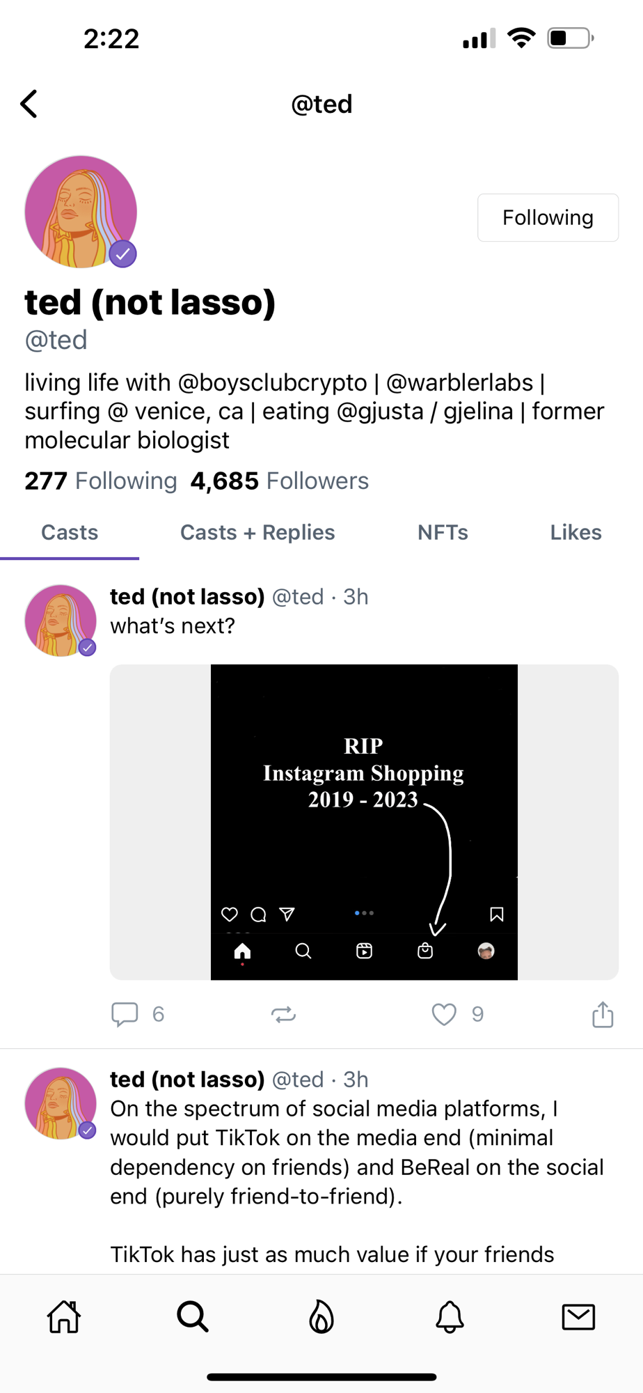Warpcast is a client for Farcaster, a new type of social network. It's decentralized, like email, which means you control your account. It's an ever-growing community of interesting, curious people from all over the world. Connect with others by creating a profile and posting public messages.