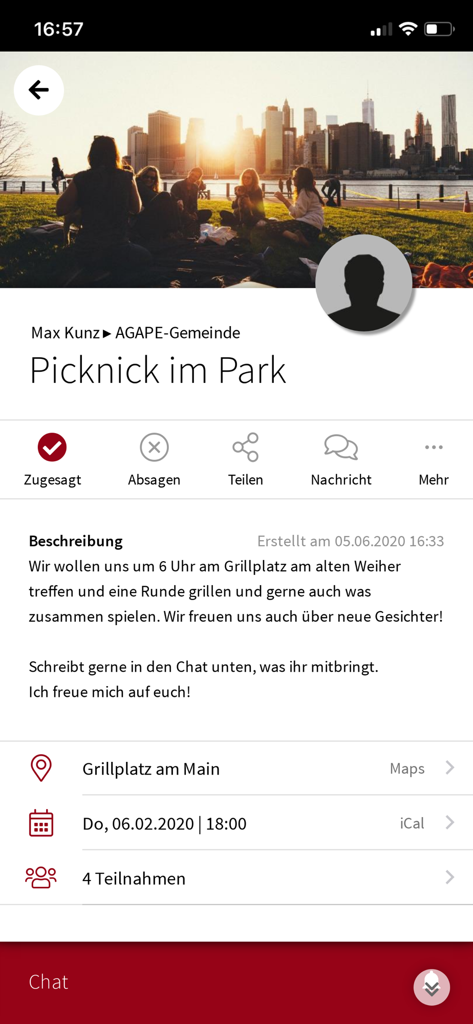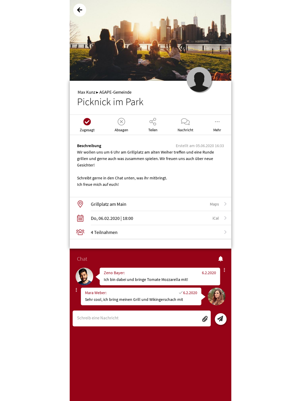 Mit der App der AGAPE-Gemeinde bekommst Du umfangreiche Info‘s zu unseren Events, zu Angeboten, Gebetsanliegen u. v. m. direkt auf Dein Smartphone. Du suchst eine gebrauchte Microwelle oder hast ein Kinderfahrrad übrig? Stell einfach Dein Angebot oder Gesuch ein. Über den integrierten Messenger kannst Du mit anderen Usern direkt kommunizieren – alles datenschutzrechtlich sauber. Herunterladen – registrieren – einloggen – und los geht’s!