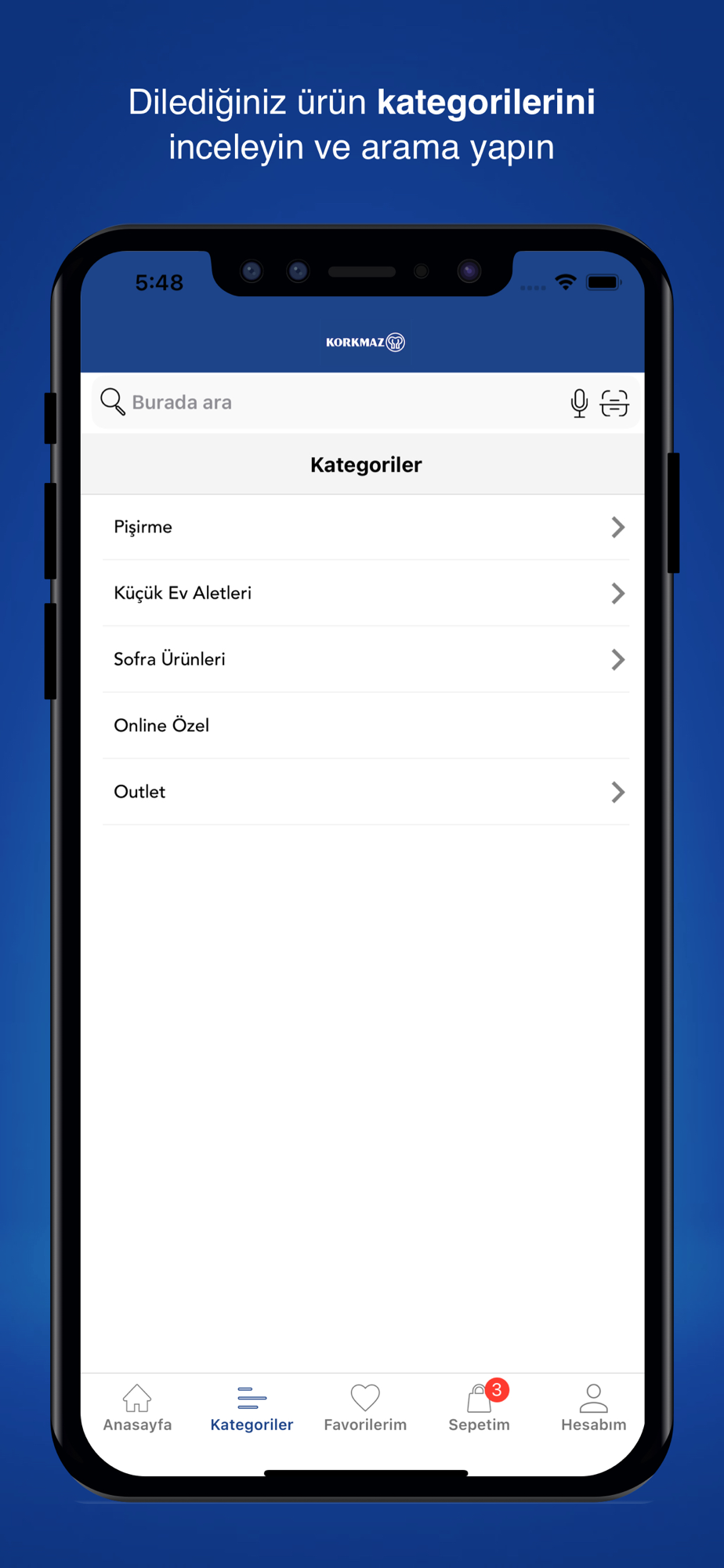 *Korkmaz uygulaması ile mutfağınızın tüm ihtiyaçlarına anında ulaşabilirsiniz.
