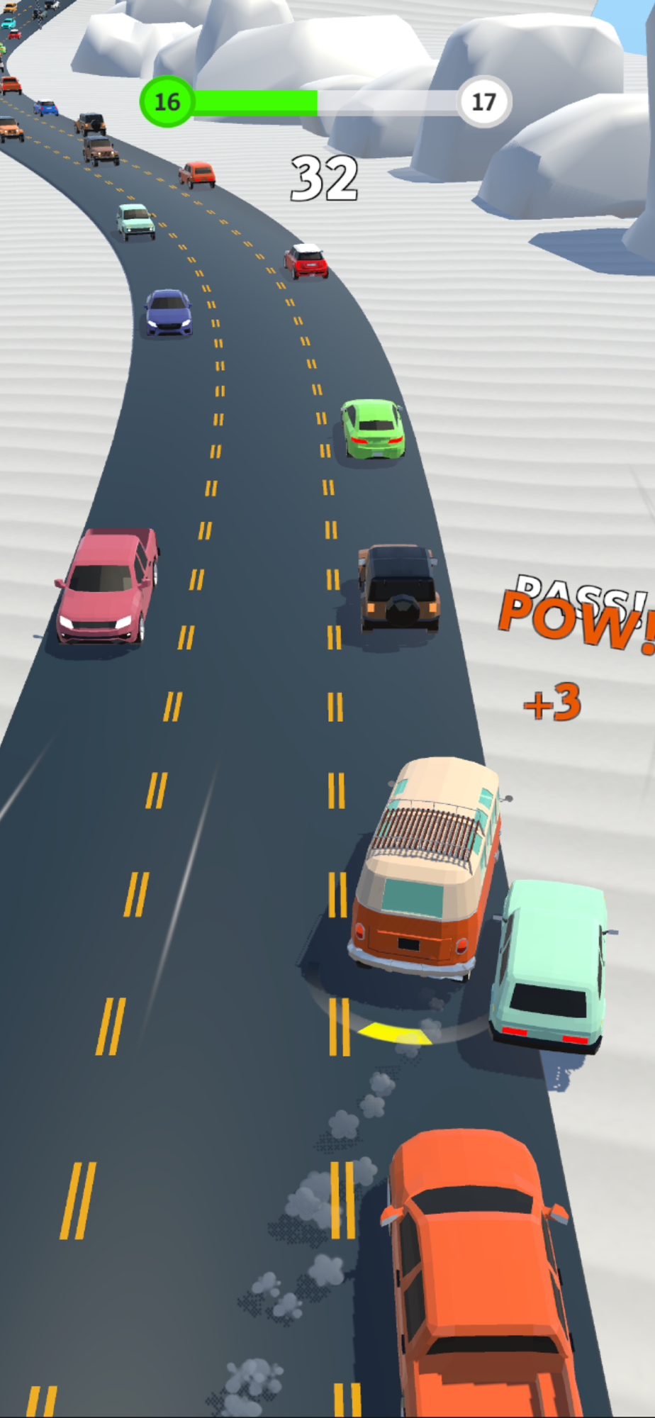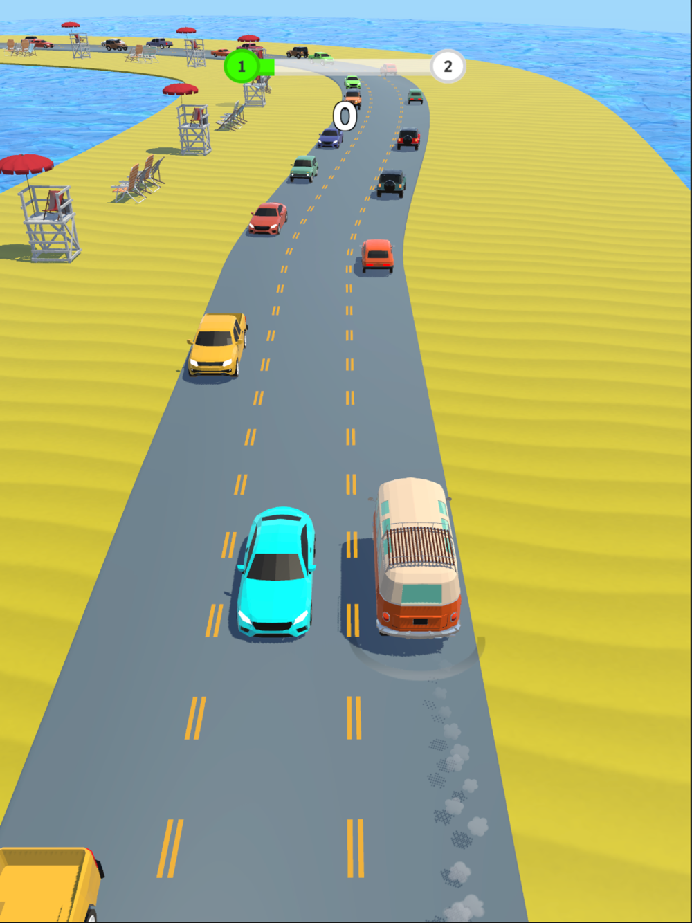 Get to the finish line without hitting a car from opposite lane!