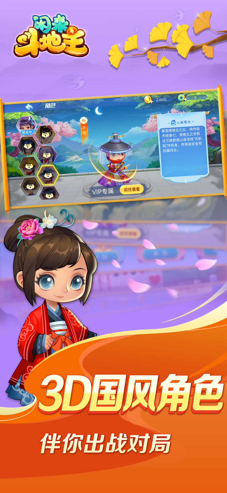 闲来斗地主是一款休闲类棋牌游戏,3D国风画面风格独特,操作流畅易懂。实时对战,包含经典、不洗牌、欢乐等各种斗地主玩法,让您的闲暇时光充满趣味。