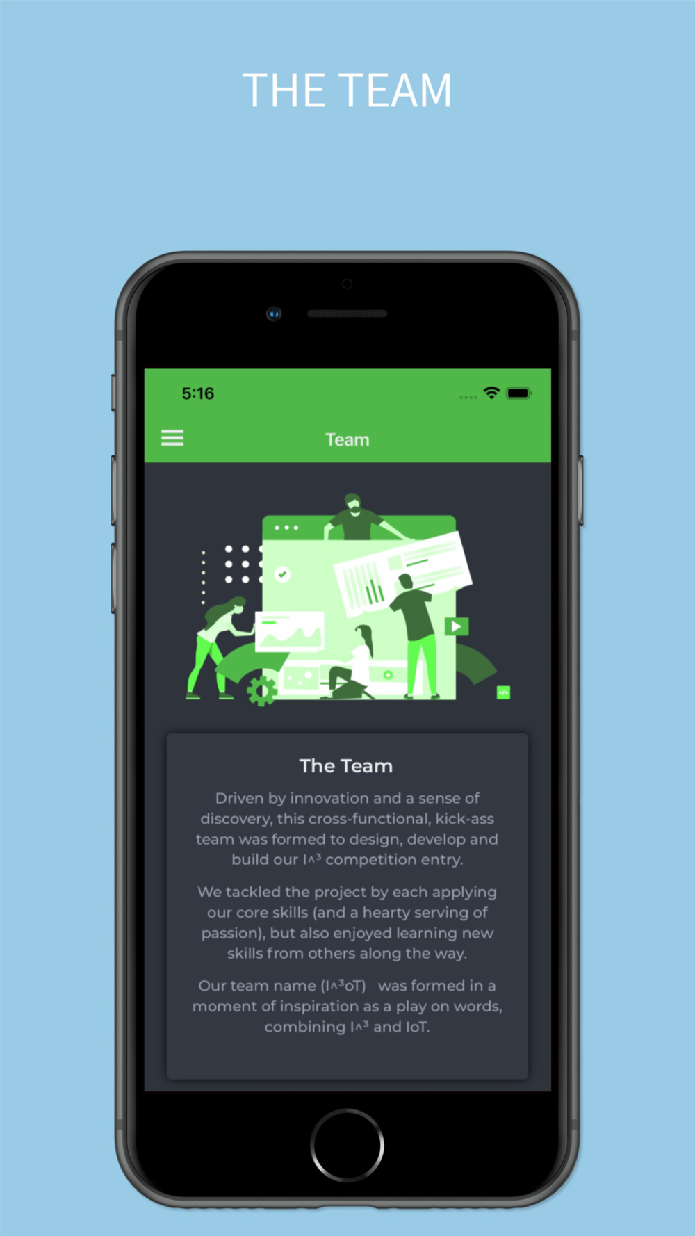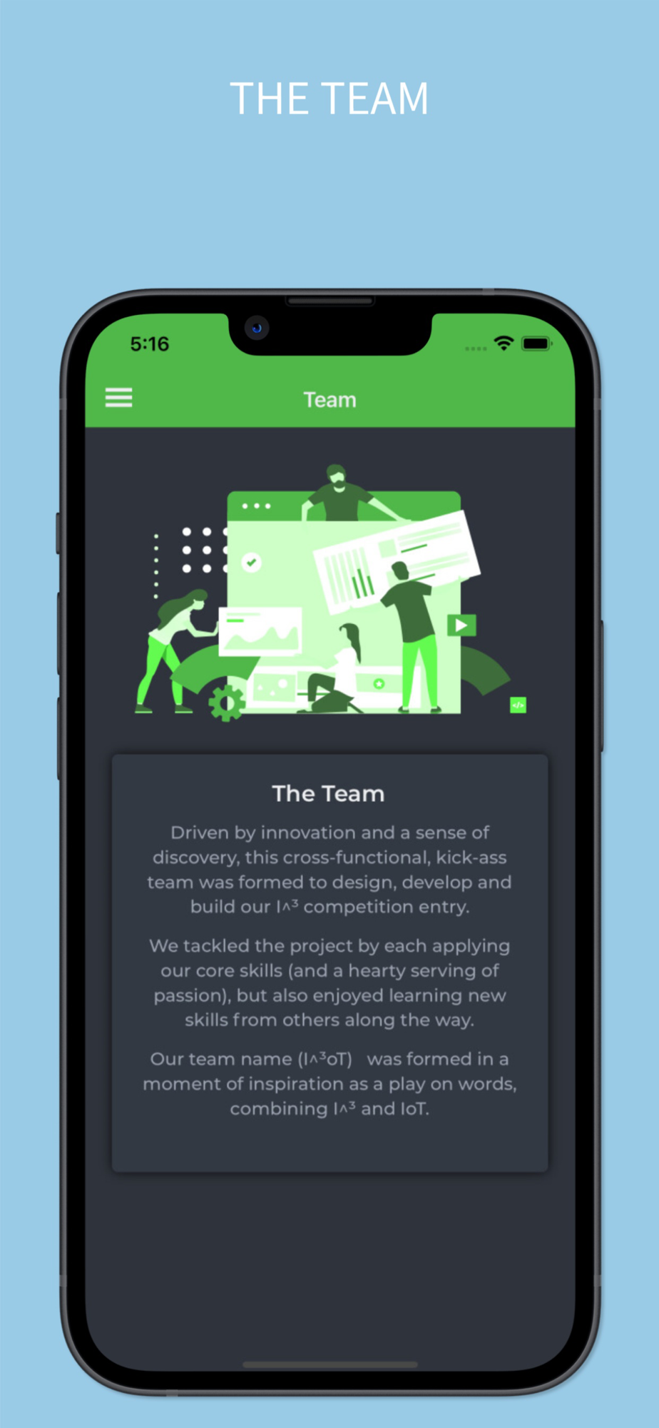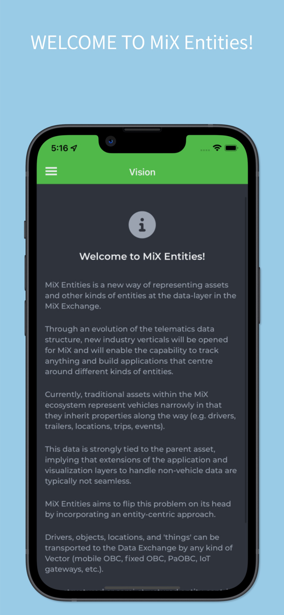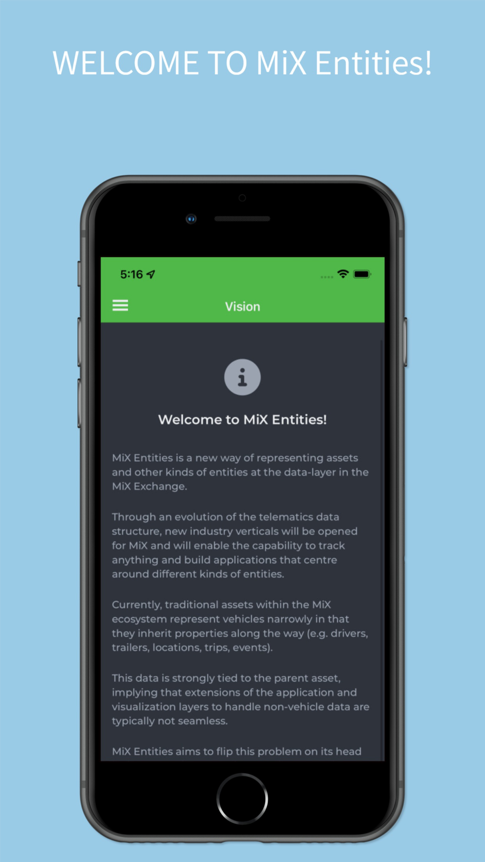 In addition the app provides some information pages about the team and the vision of MiX Entities.