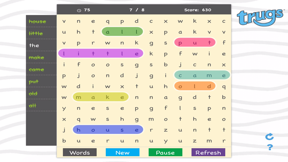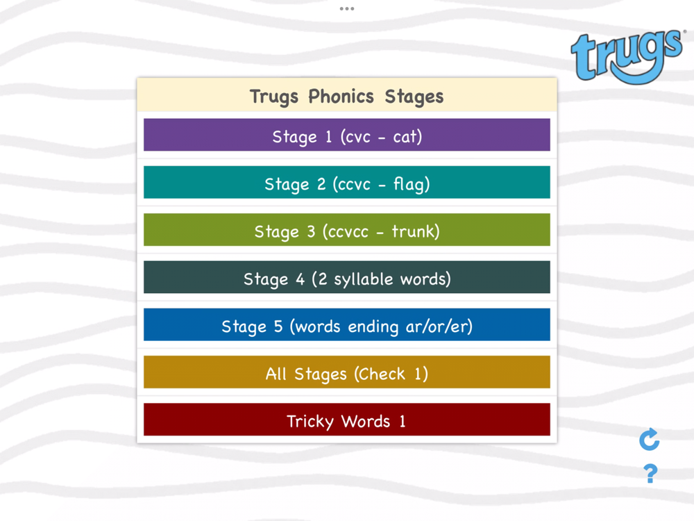 Trugs® is a structured phonics based English reading resource for school and home. Trugs Word Search is a structured word finder app to help read and identify words from the same Trugs phonics stage. This app is supplemental to the Trugs literacy card games and related activities, or can be used on its own.