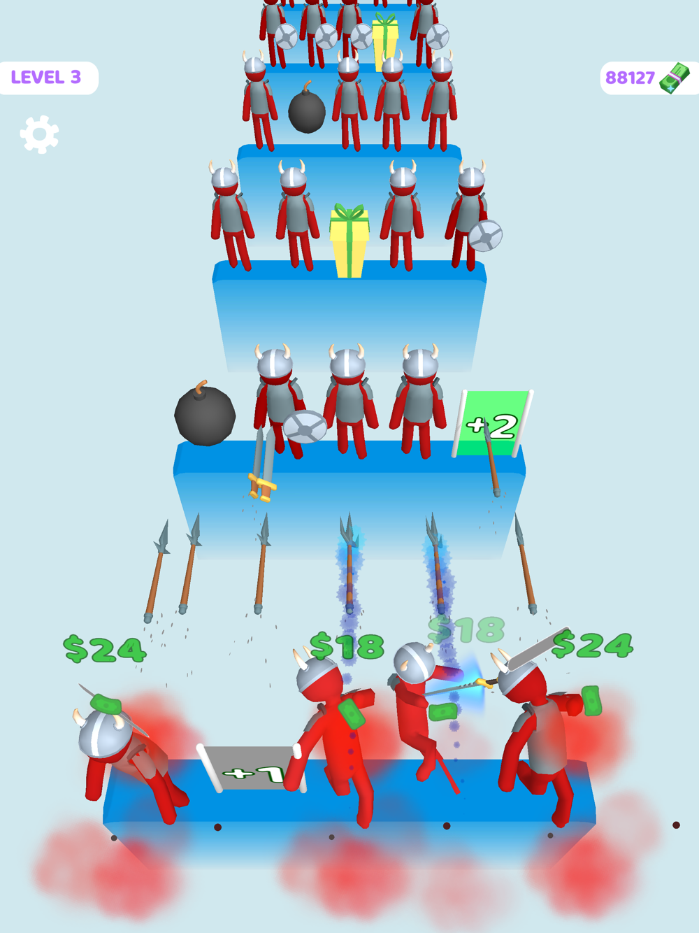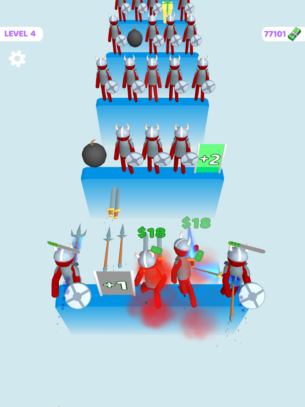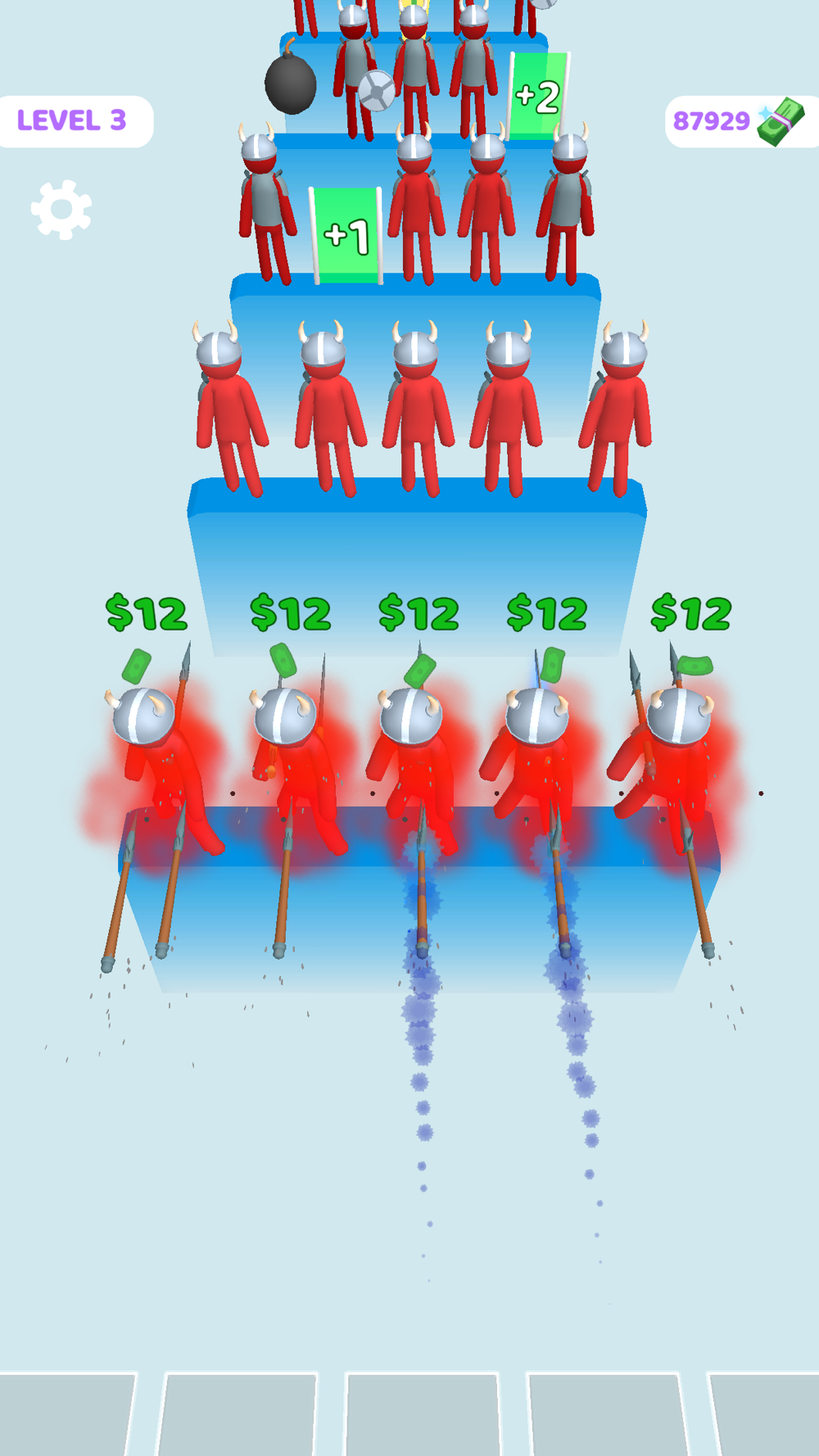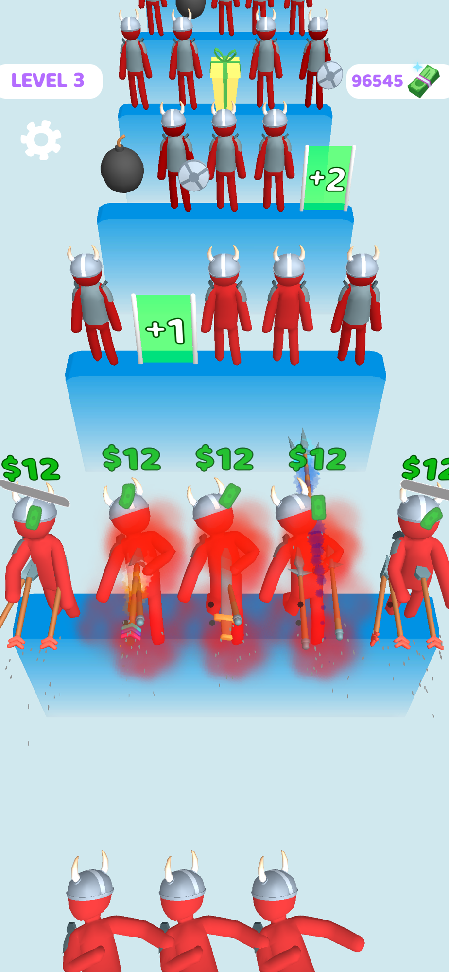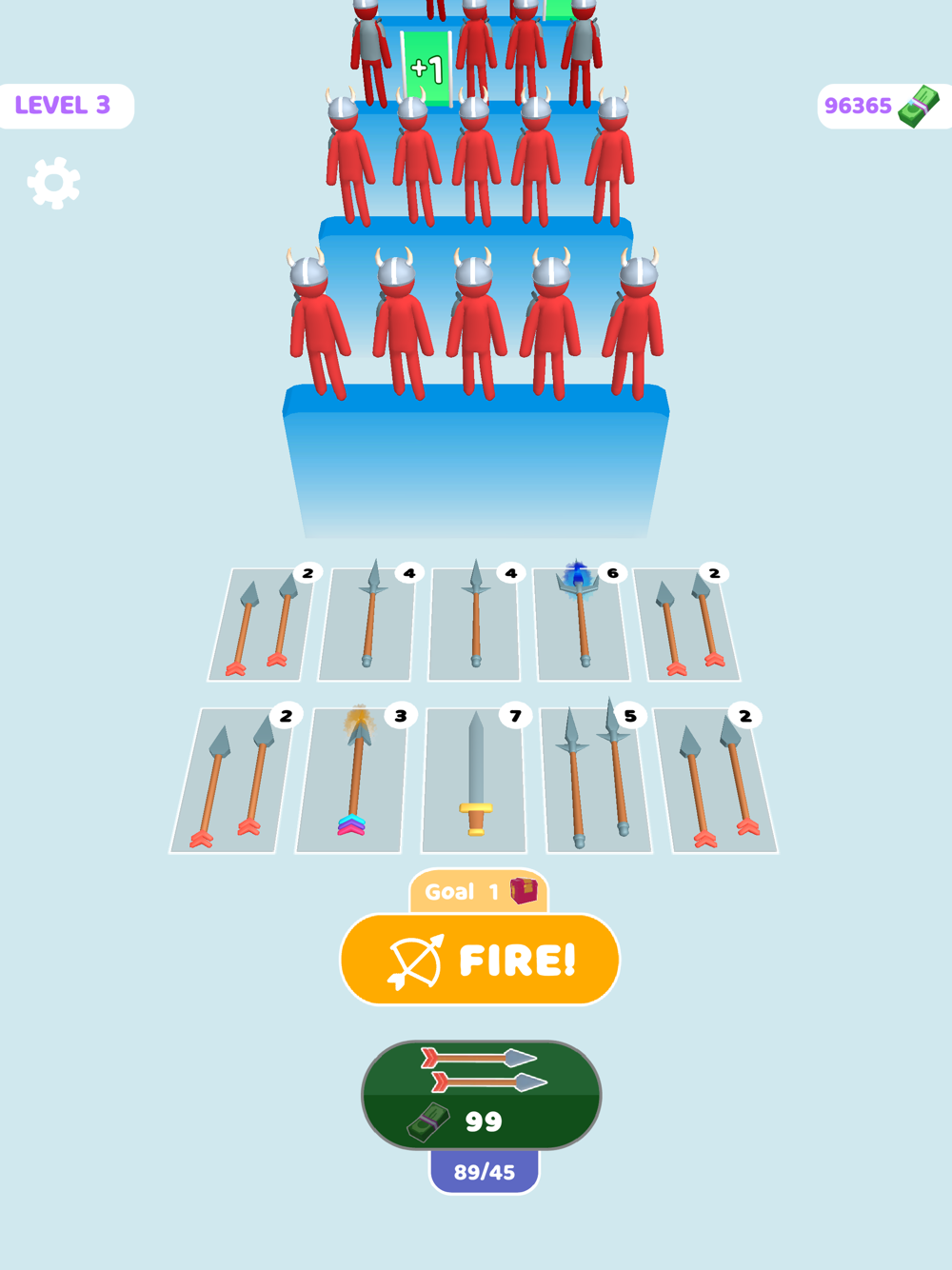 Merge all your weapons and fire them to your enemies! Destroy all your enemies to earn money! With more money, you can improve weapons! Do not forget to merge them or you will fail!