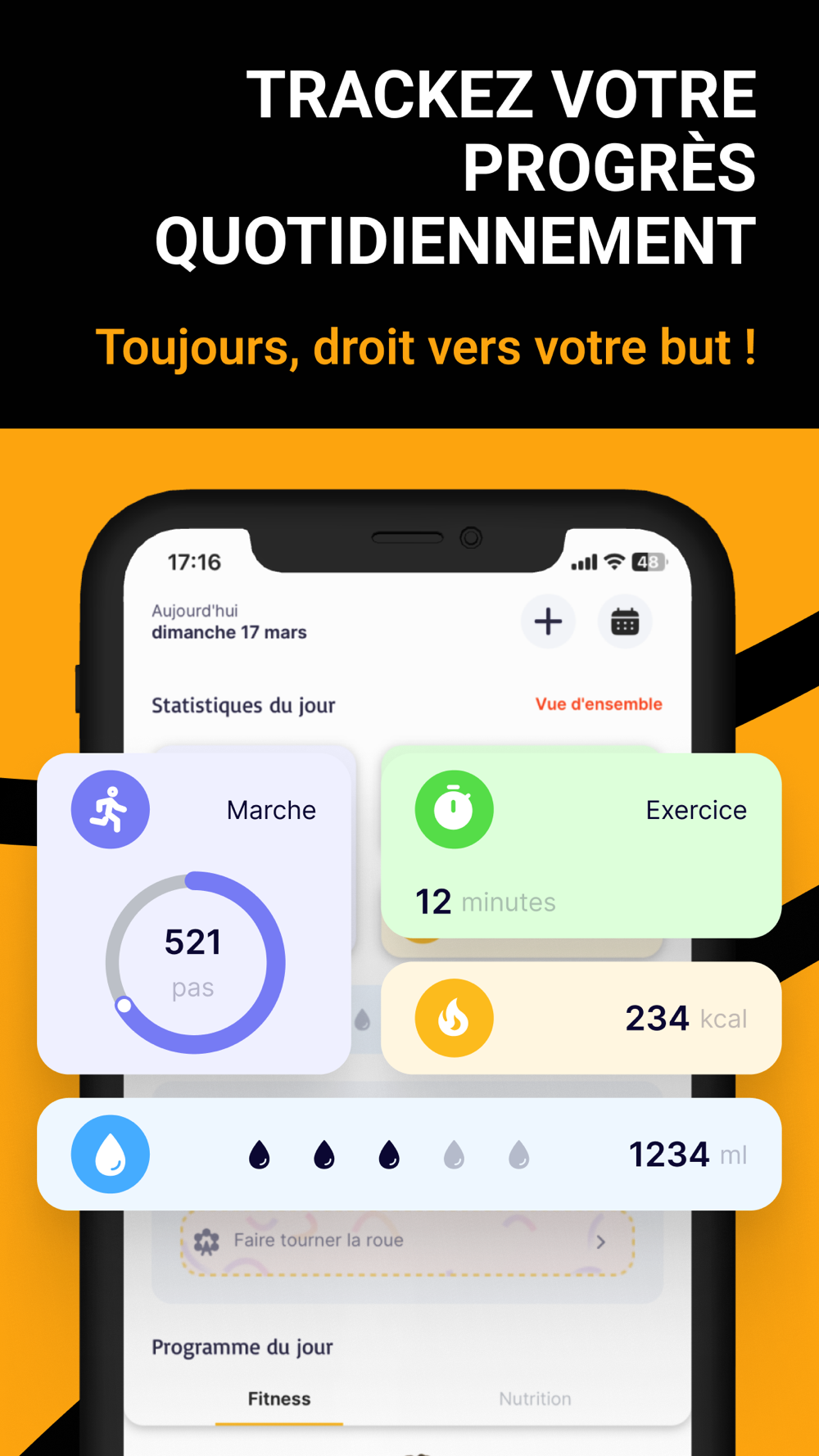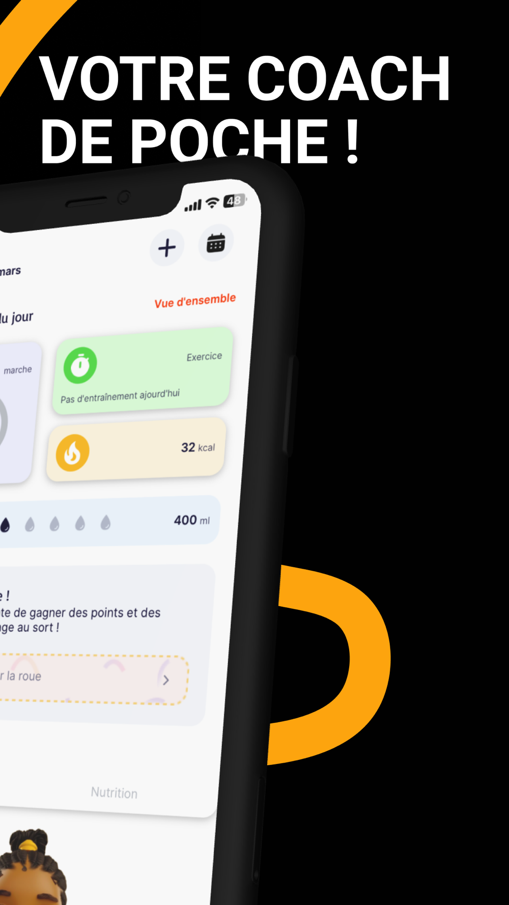 - Gagne des points avec tes pas, tes séances et tes repas.