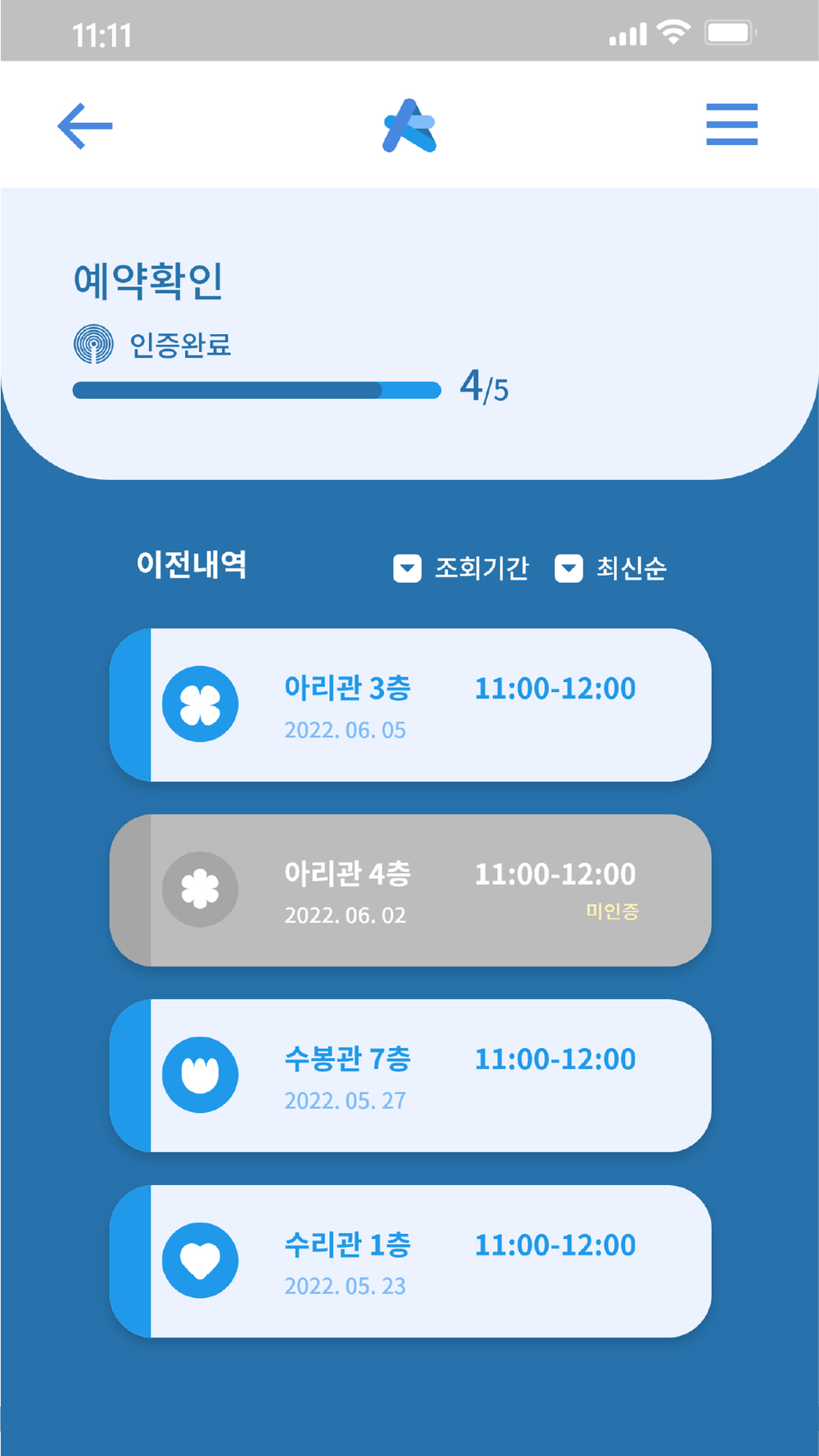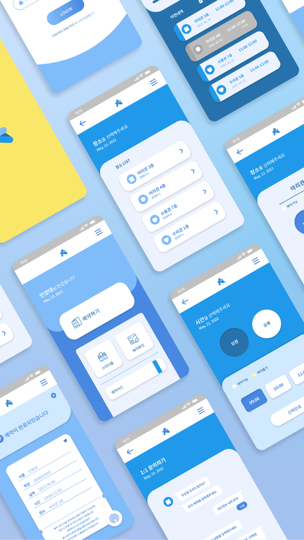 아리관 3/4층, 수봉관 7층, 수리관 1층에 위치한 셀프 학습실 좌석 예약 앱입니다.