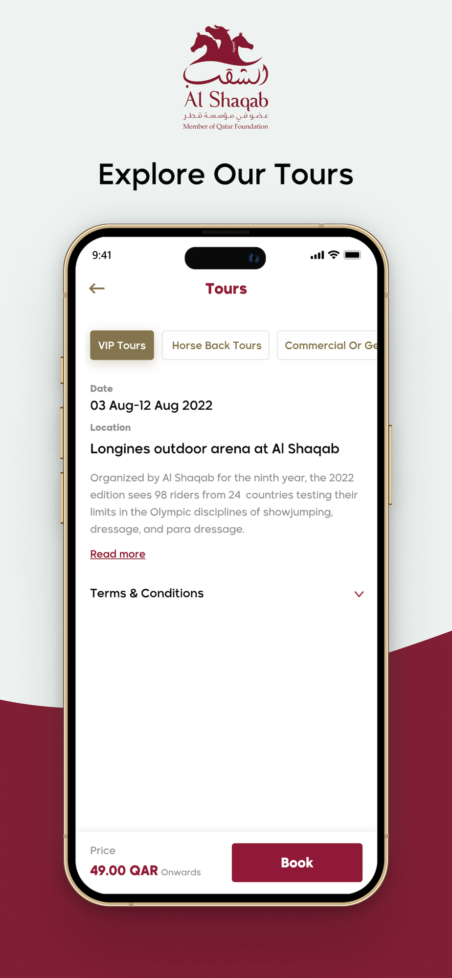 The Al Shaqab app features information about: