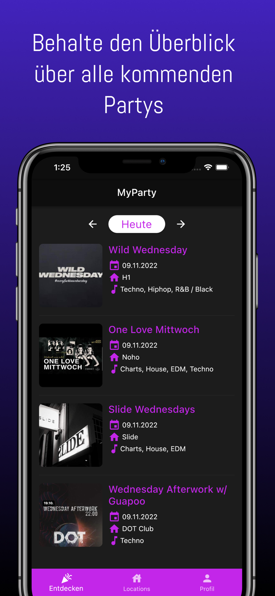 Und wenn du Bock hast auch ne Party zu schmeißen, easy going: Mach dir ein Location-Account und teile deine Party mit deinen Leuten. Dabei kannst du deine Party so genau beschreiben wie du möchtest, um genau die Leute einzuladen, die für die perfekte Stimmung sorgen. Dabei kannst du auch Vergünstigungen und Links einbauen, damit die Gäste simpel und elegant alles parat haben.