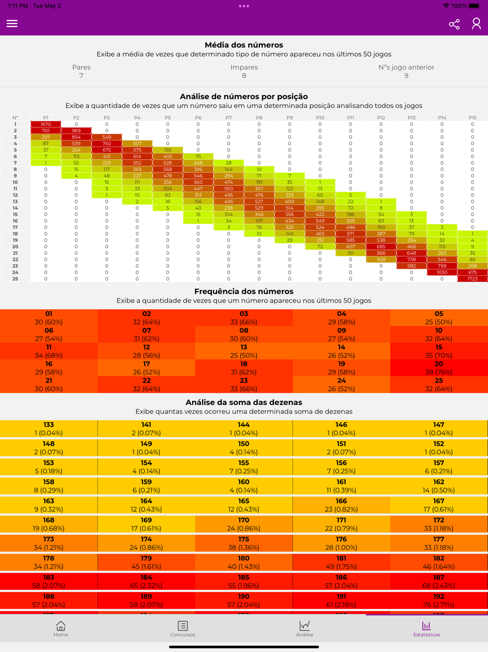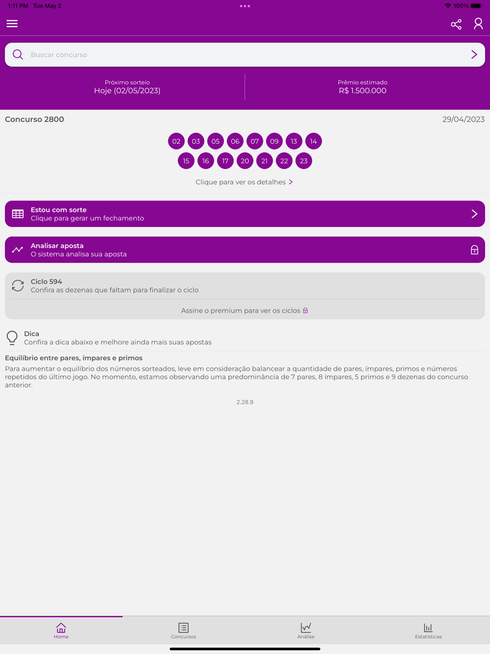 No app, você encontra diversas análises e levantamentos sobre todos os jogos já ocorridos, incluindo relação de pares e ímpares, maior sequência, dezenas em atraso e maior ocorrência das dezenas por posição. Além disso, o aplicativo oferece a possibilidade de gerar fechamentos para a Lotofácil, com conferência automática.