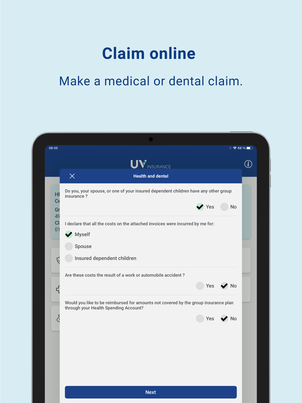 * The UV Group Insurance application is available free of charge, but standard data usage fees may apply.