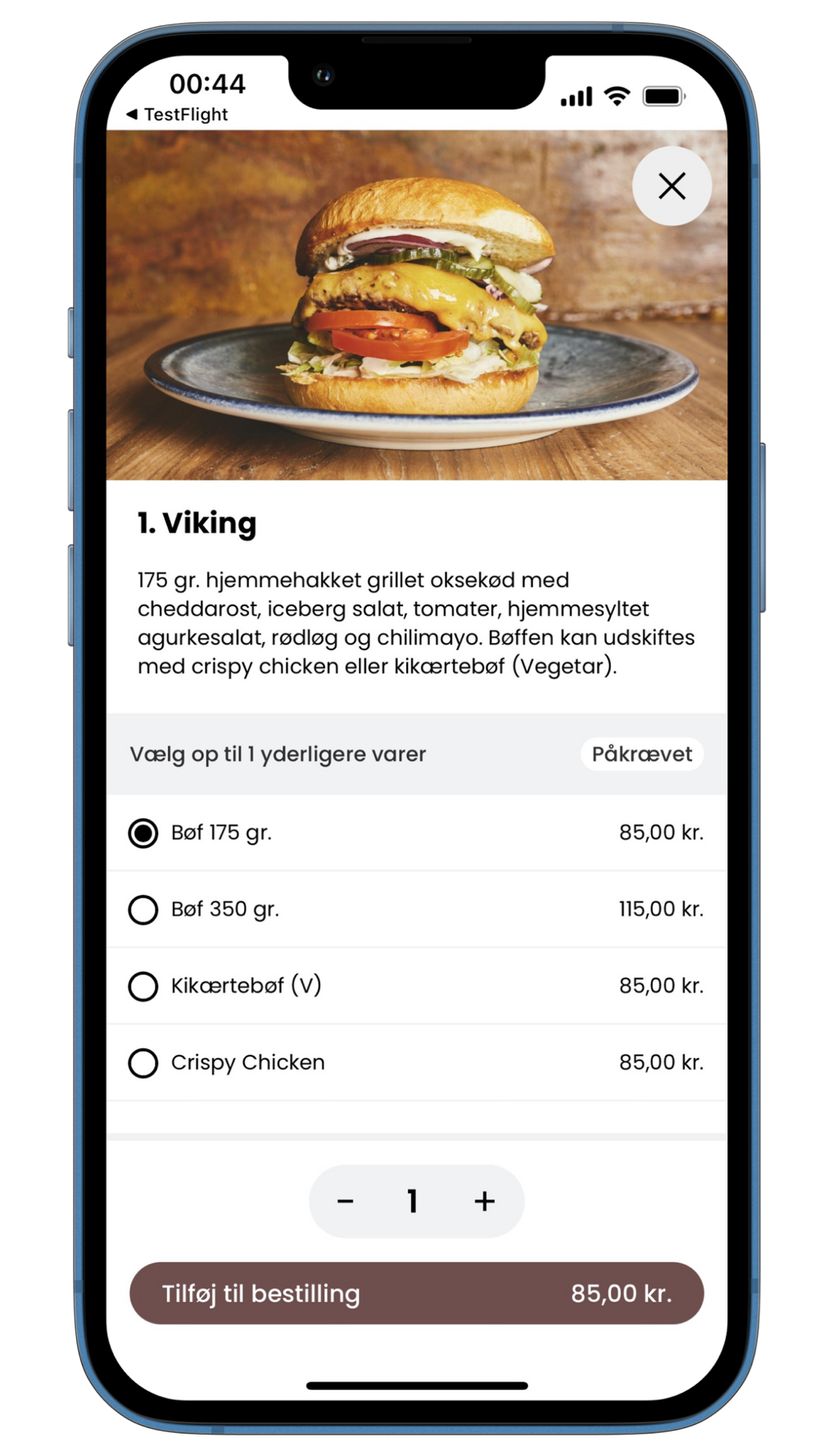 Med Burger Hytten-appen kan du nemt og hurtigt bestille og betale for dine yndlingsburgere.