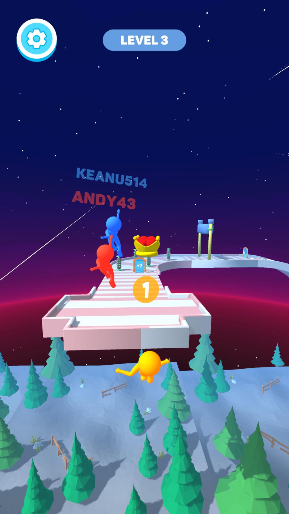 In Bump Crowd Guys, you must race against other participants and complete a challenging obstacle course. Dodge obstacles, bounce on trampolines, and avoid traps to reach the finish line. But be careful, because other players will try to push you out of the way!