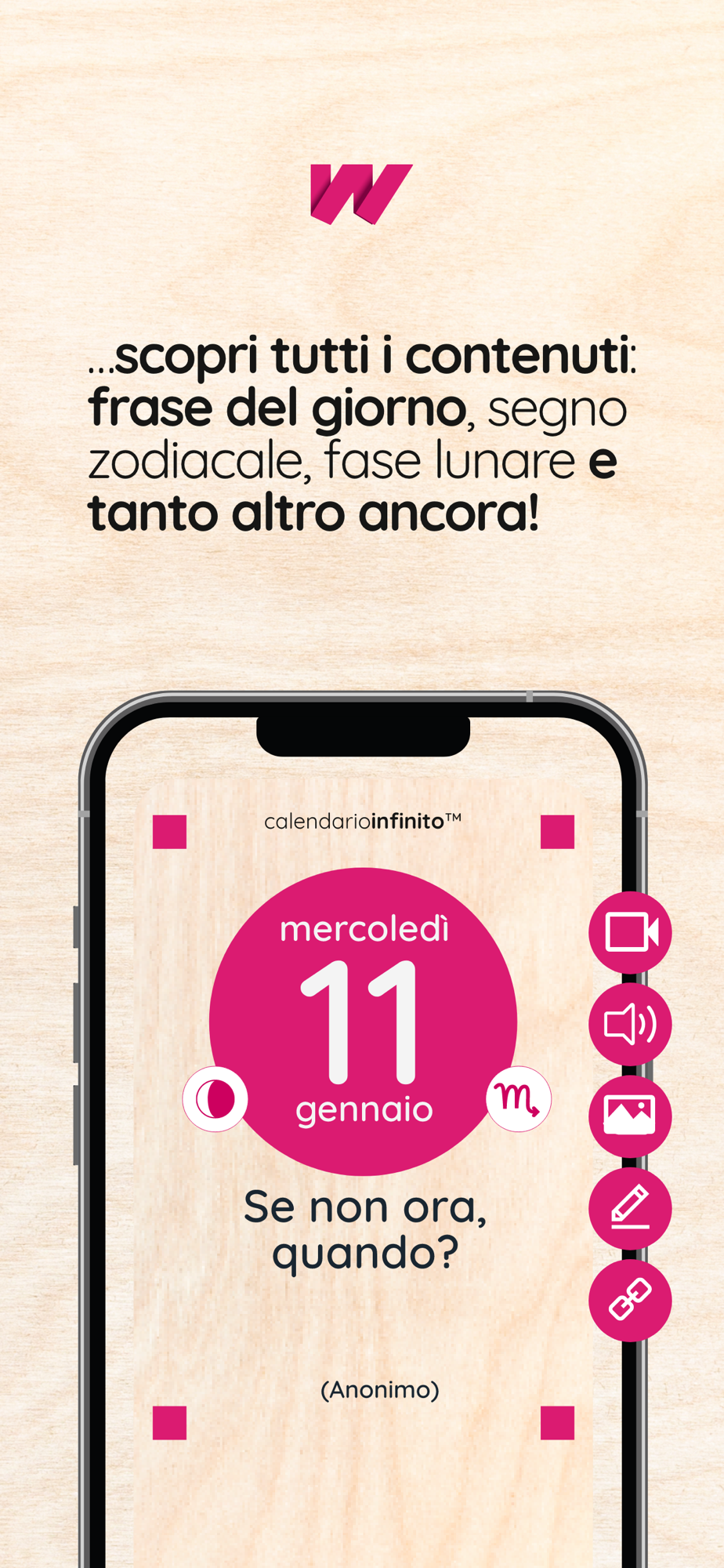 Tramite la app CalendarioInfinito® potrai leggere le frasi del calendario che acquisterai oppure acquistare nuovi frasari per leggere nuovi aforismi.