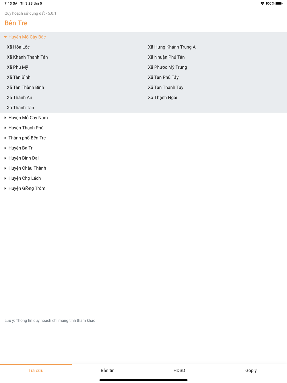 - Tra cứu thông tin quy hoạch tỉnh Bến Tre.
