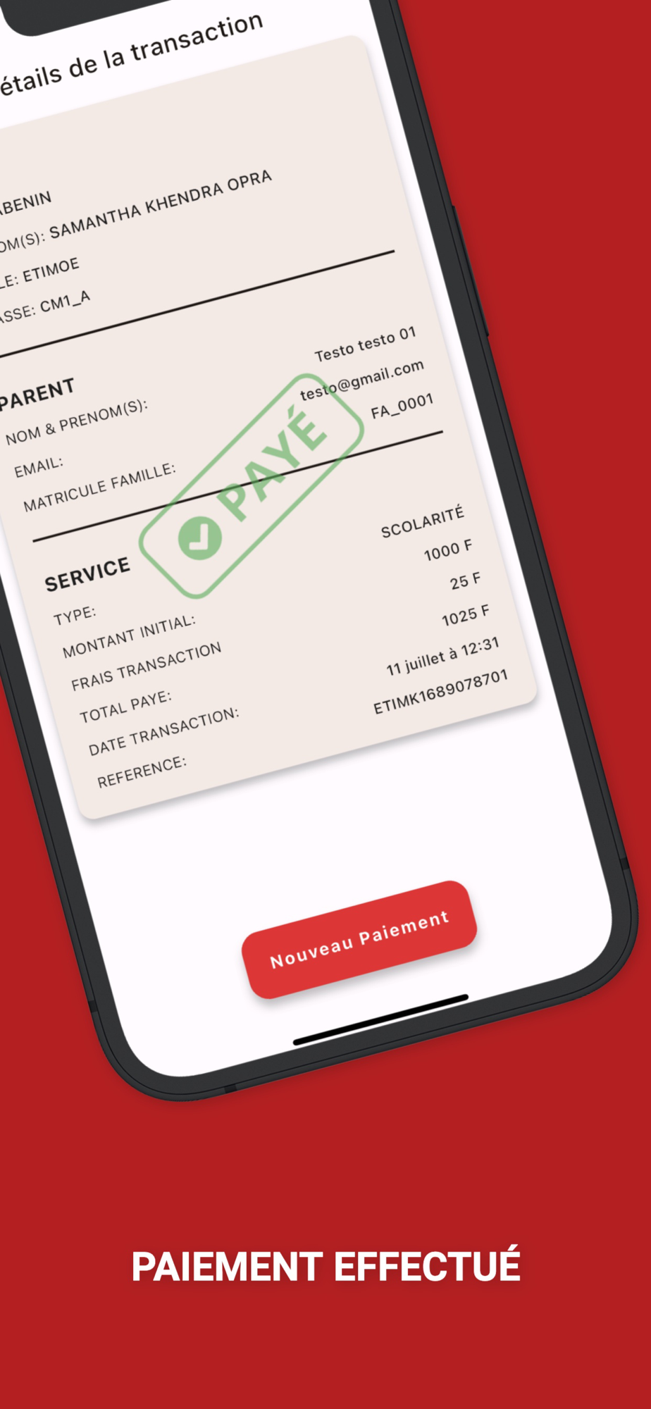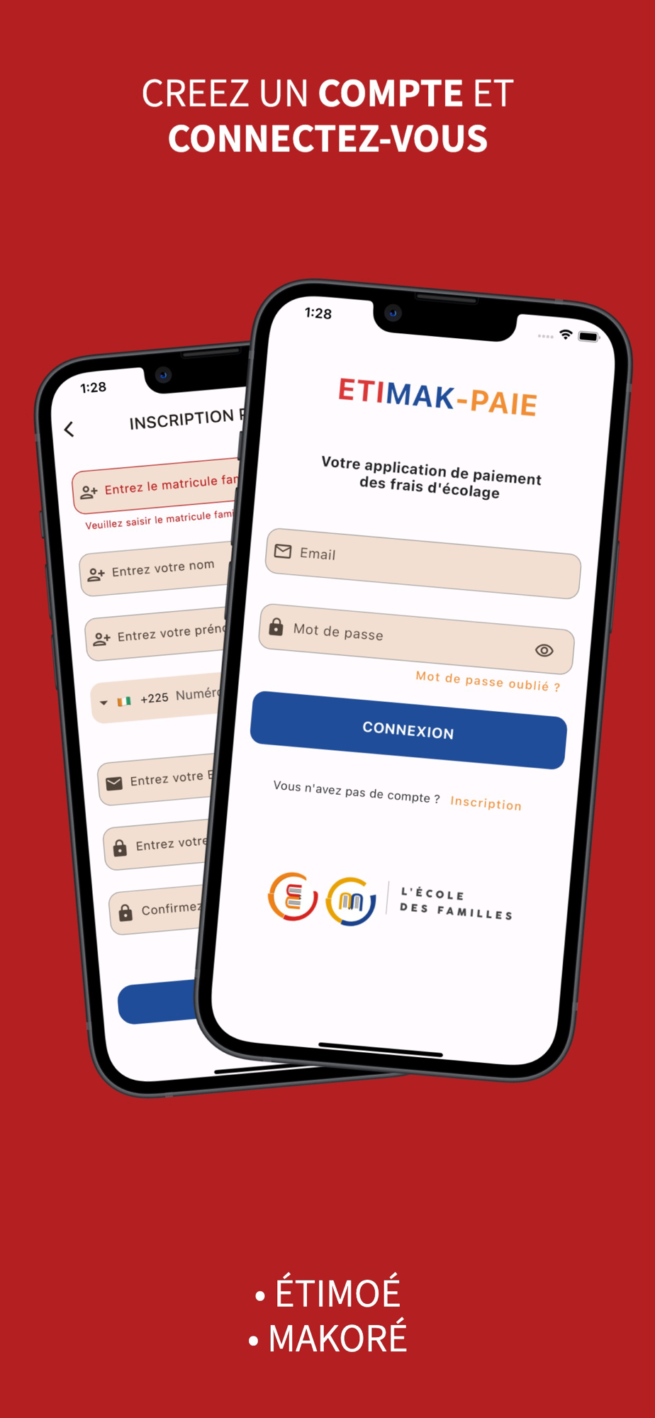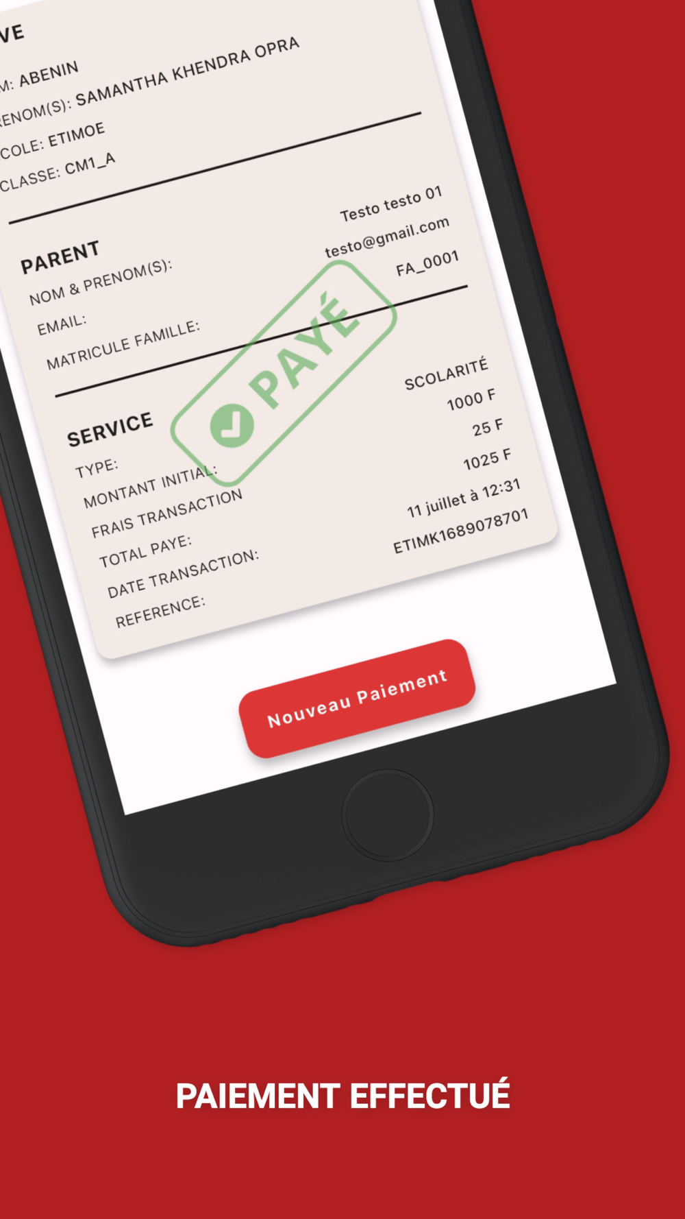 ETIMAK PAIE est un outil pratique et sécurisé qui permet aux parents et aux élèves de gérer facilement le processus de paiement des frais scolaires. Avec notre application, vous pouvez effectuer des paiements en quelques clics, accéder à l'historique des paiements, recevoir des notifications et rester à jour sur les informations liées aux frais d'écolage. Simplifiez votre vie scolaire en utilisant notre application de paiement des frais d'écolage, conçue pour vous offrir commodité, sécurité et tranquillité d'esprit.