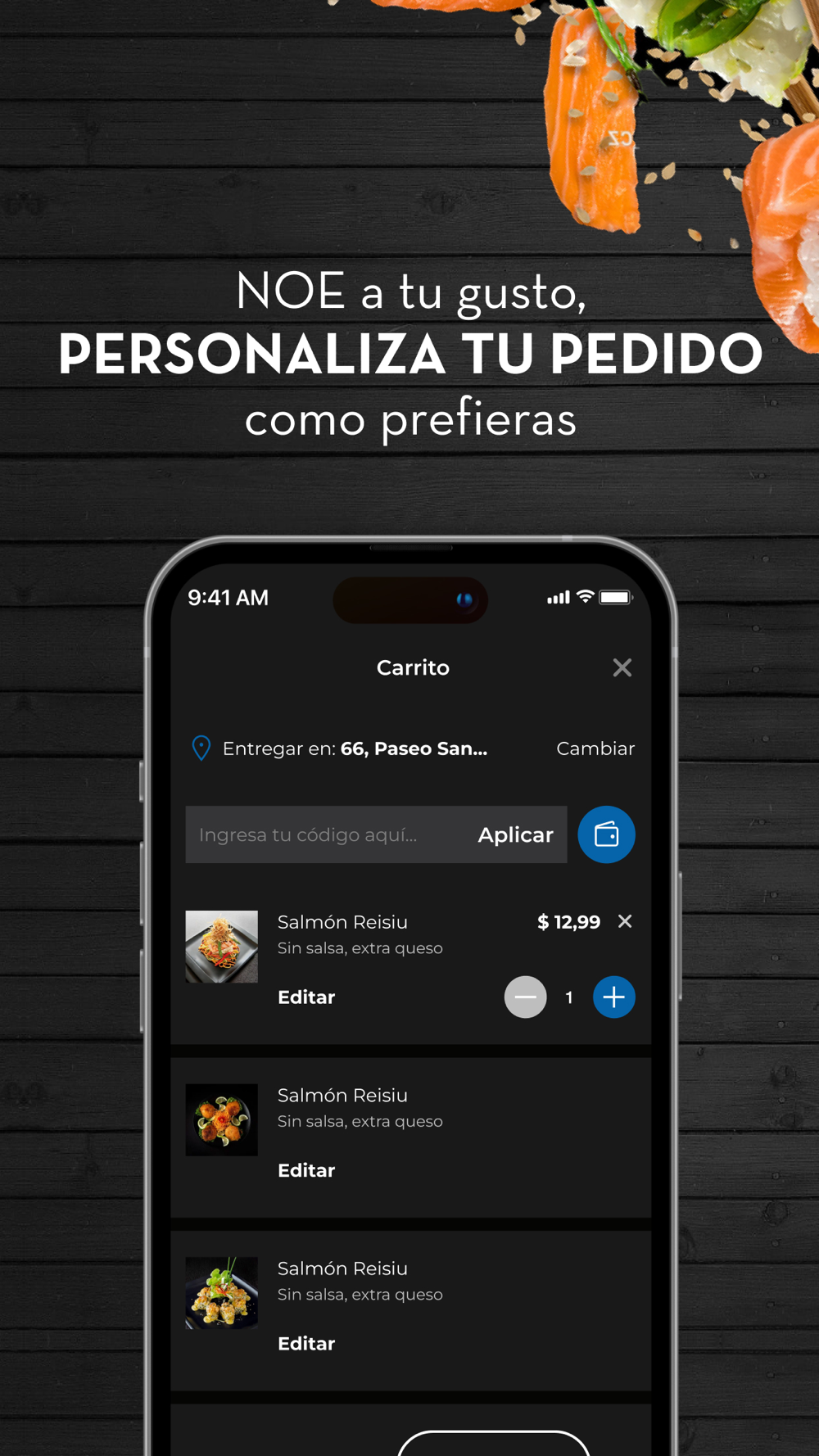 Esta lista la APP NOE, con una deliciosa selección de platos que fusionan la elegancia de la cocina japonesa con los sabores auténticos del Ecuador. Nuestro menú cuenta con entradas, sopas, deliciosos ramen, ensaladas, variedad de rollos fríos, gratinados, tempurizados y tradicionales, una deliciosa selección de sushi y sashimi, combinaciones especiales para compartir, platos fuertes de mariscos y carnes, menú vegetariano, postres y la deliciosa sugerencia del chef, cada opción es creada para conocedores de la comida fusión.