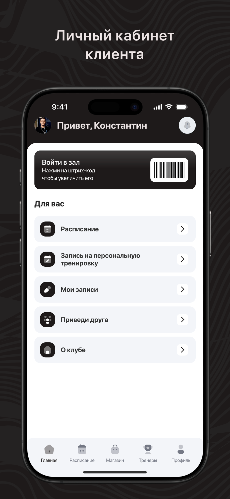 - Записаться на групповые тренировки;