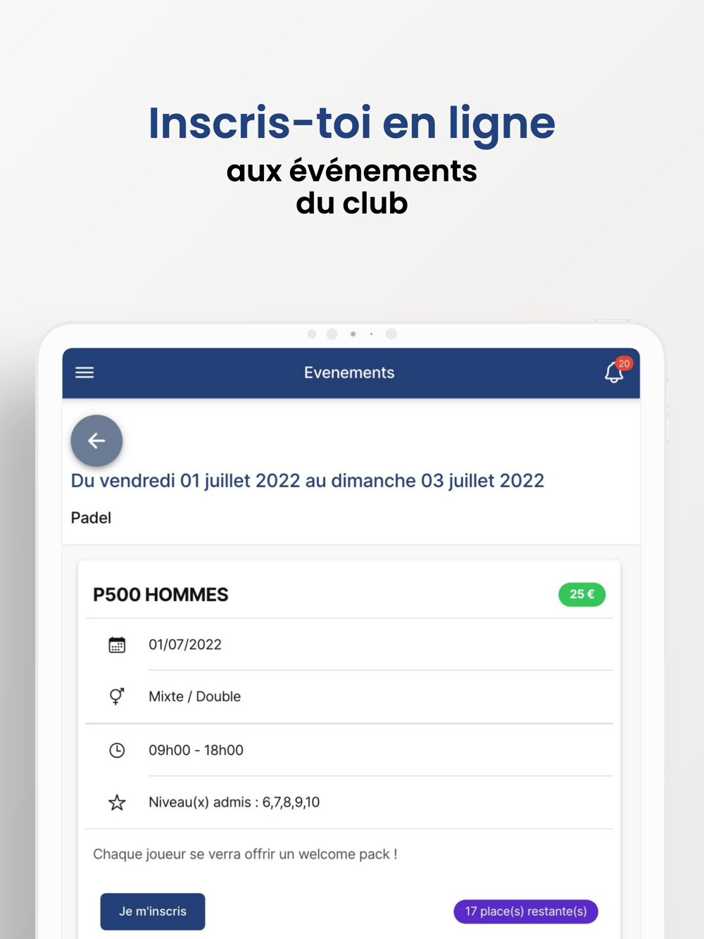 ▪ T'inscrire à des évènements