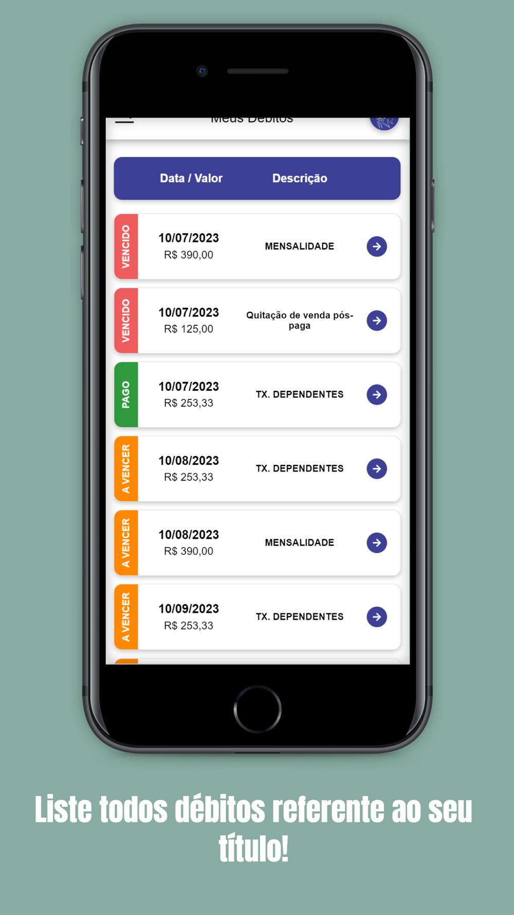 • Gerencie seus débitos diretamente do seu celular.