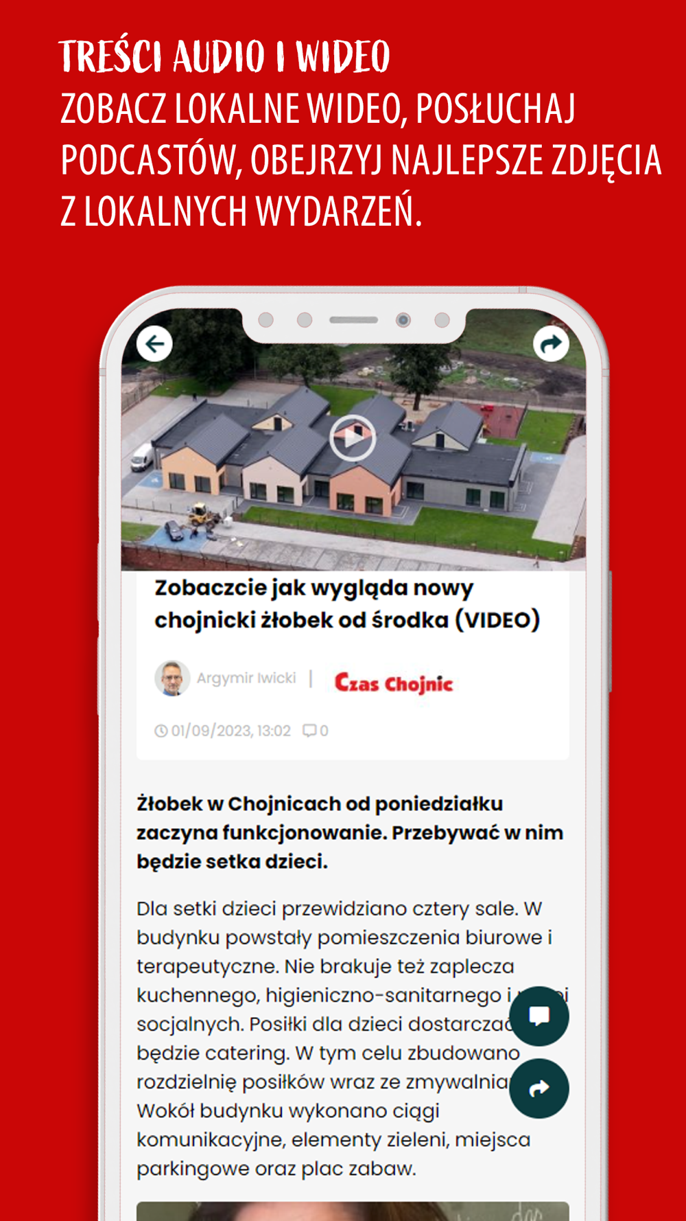 Czas Chojnic to Twoje okno na wydarzenia, które dzieją się tuż obok Ciebie. Ściągnij na-szą aplikację już teraz i bądź na bieżąco z lokalnymi informacjami, które Cię interesują!