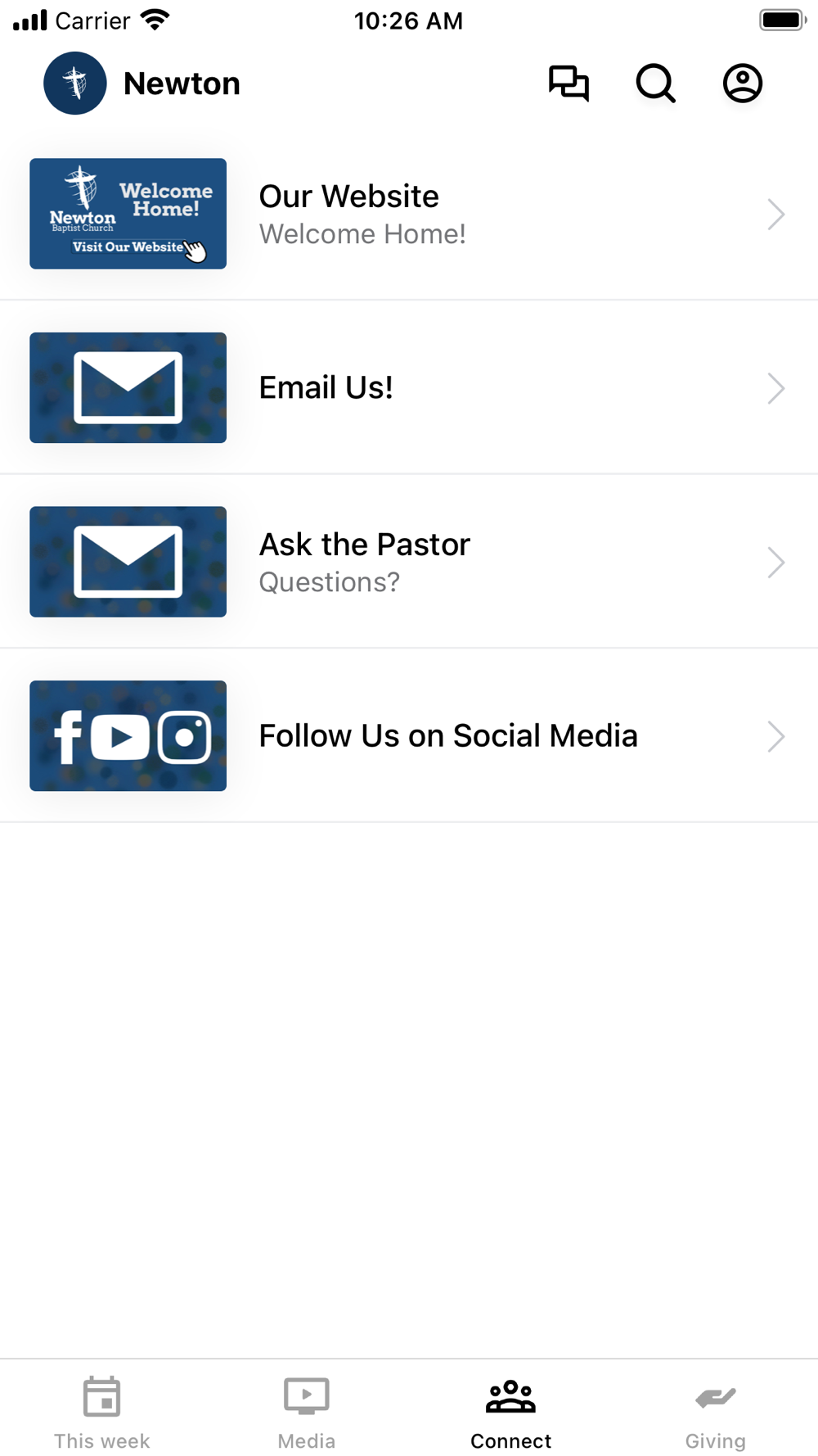 This app will help you stay connected with the day-to-day life of our church. With this app you can: watch or listen to past messages; stay up to date with push notifications; share your favorite messages via Twitter, Facebook, or email; and download messages for offline listening.