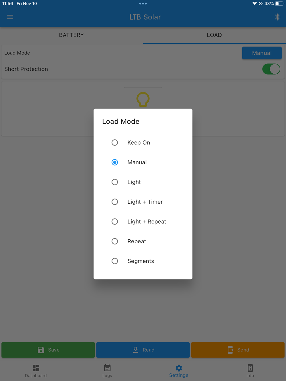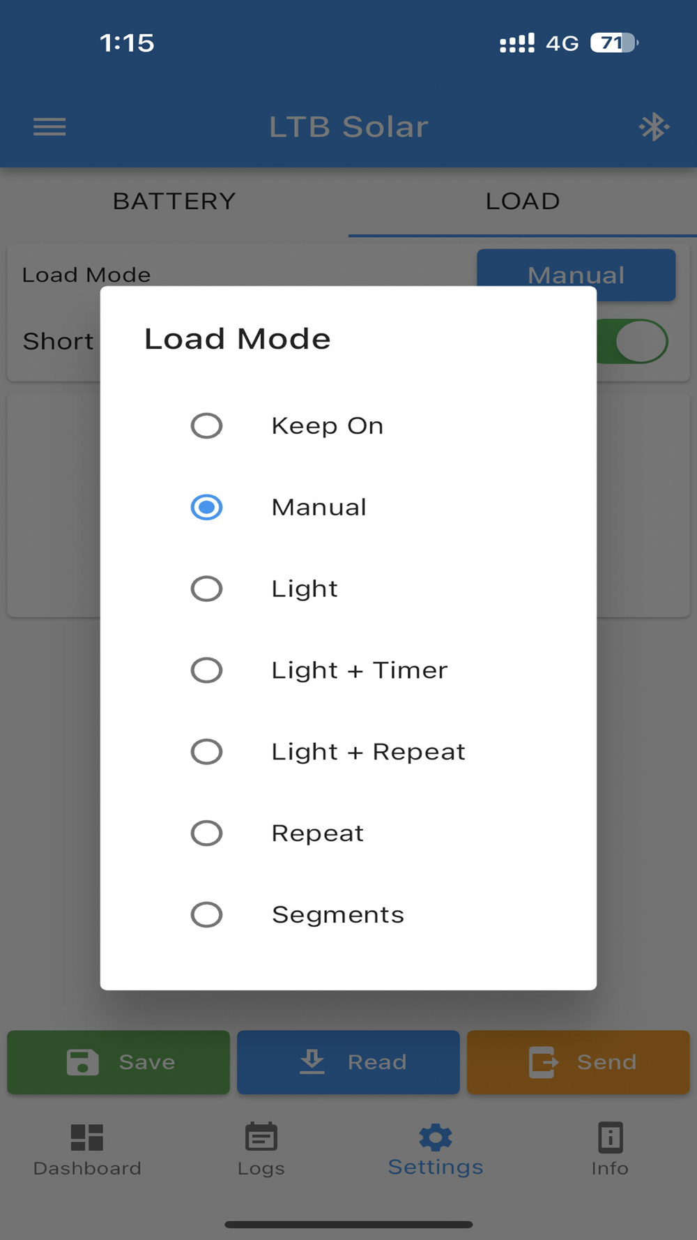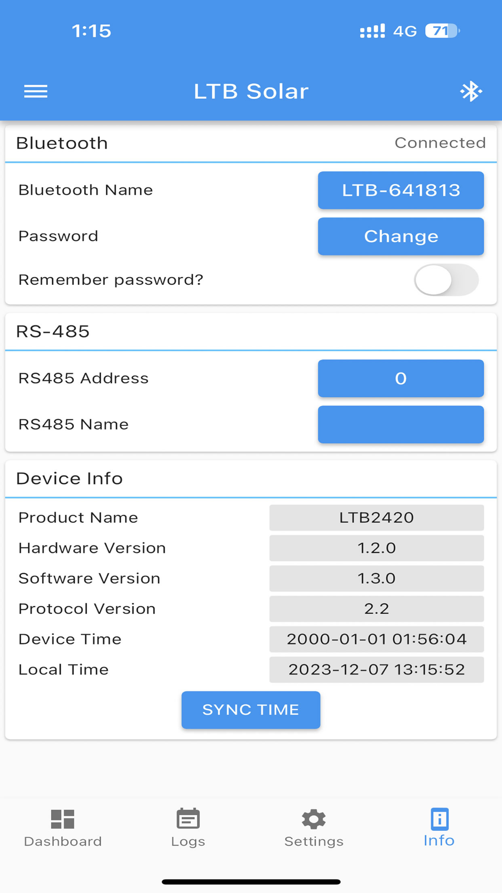 This is a remote control APP for LTB Solar controller, it connects to the controller via Bluetooth.