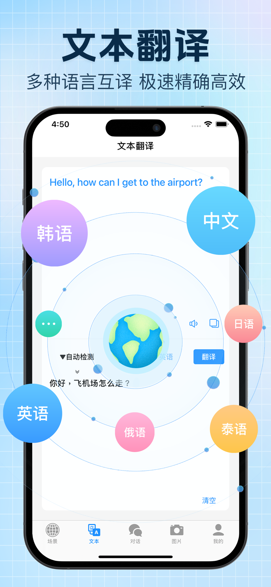 多语言文本翻译,拍照翻译、语音识别翻译、语音转文字翻译,轻松智能翻译!