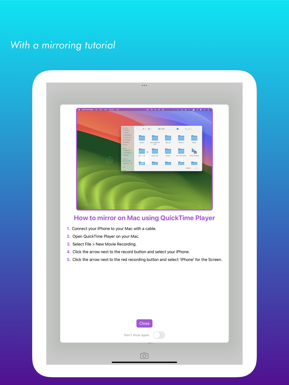 Developed specifically for showcasing a straightforward camera preview during screen mirroring.