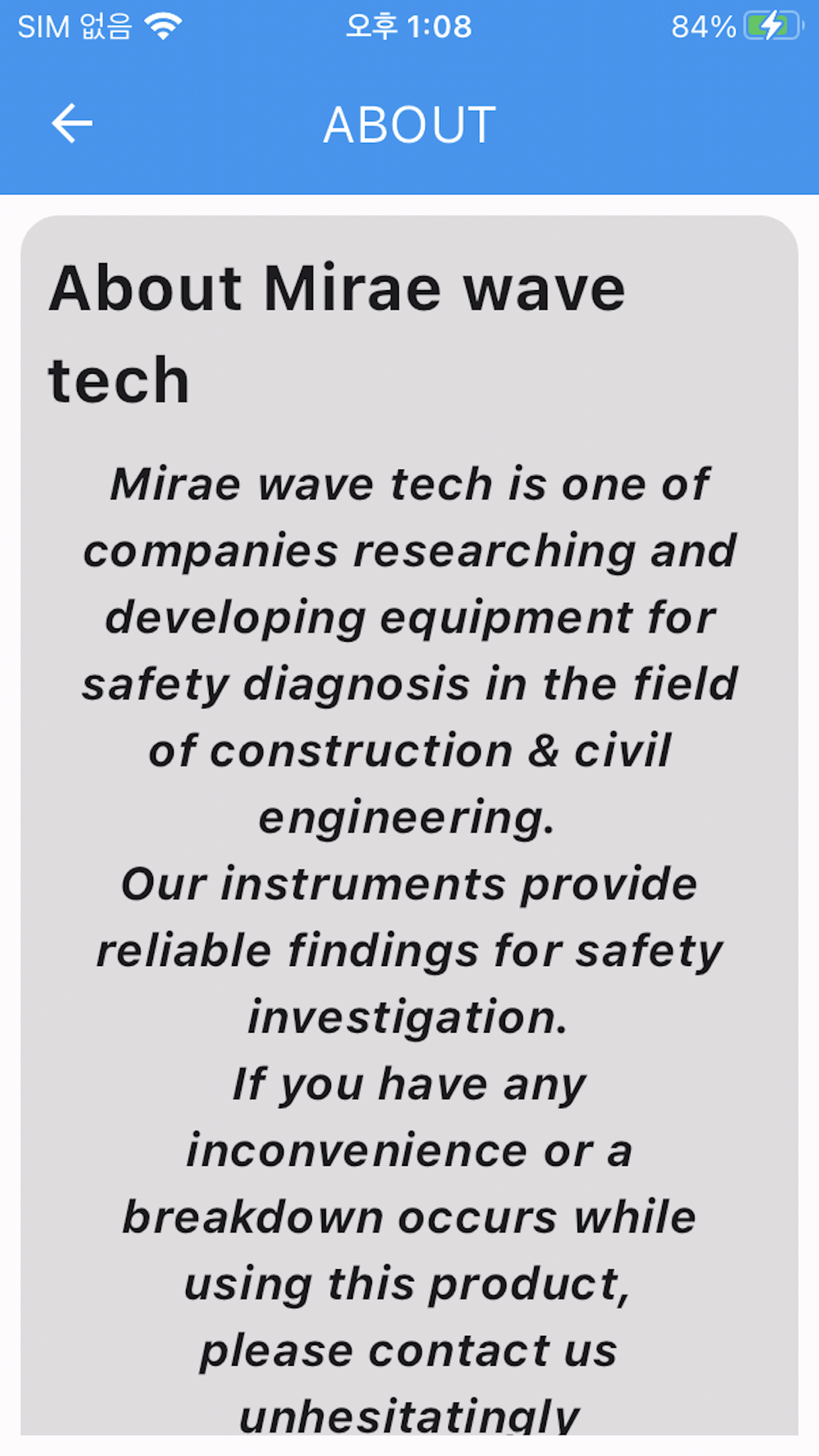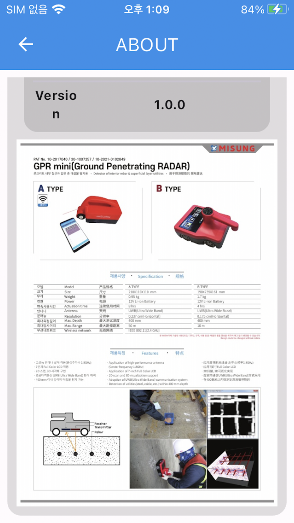 미승씨앤에스검사의 GPR Mobile 제품이 측정한 값을 아이폰에서 직접 확인 하실 수 있습니다.
