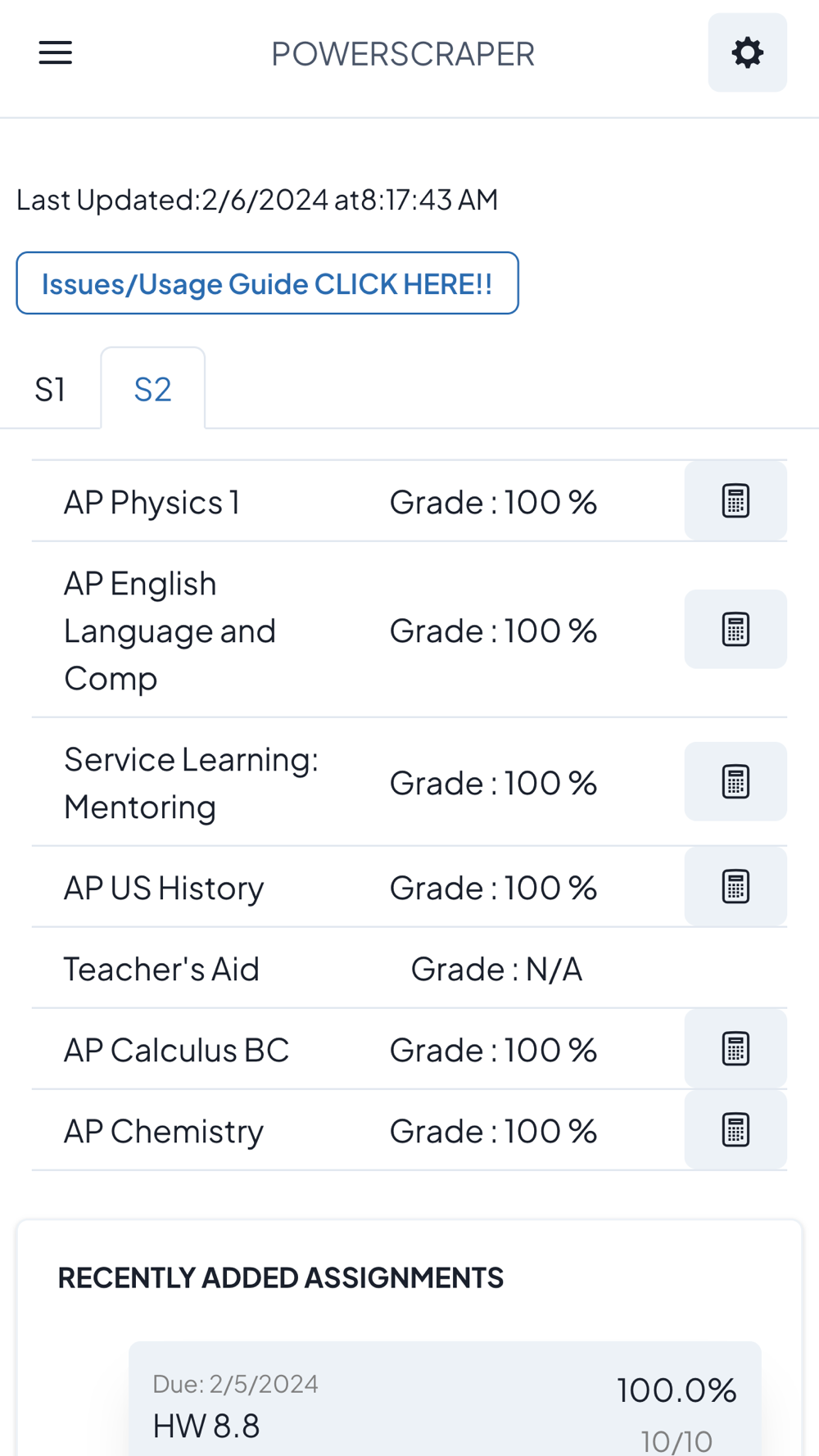 Experience academic empowerment at its finest with our dedicated app tailored for VCHS students! Effortlessly view, calculate, and track your grades with pinpoint accuracy, rivaling even POWERSCHOOL. Our user-friendly interface ensures a seamless transition, making it a drop-in replacement for your grading needs.