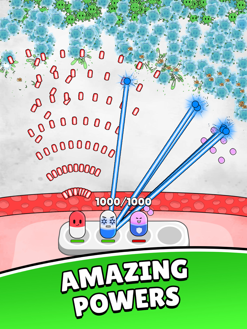 Defend your fortress against waves of viruses using strategic pill placements and tactical upgrades to max out your chances of survival.