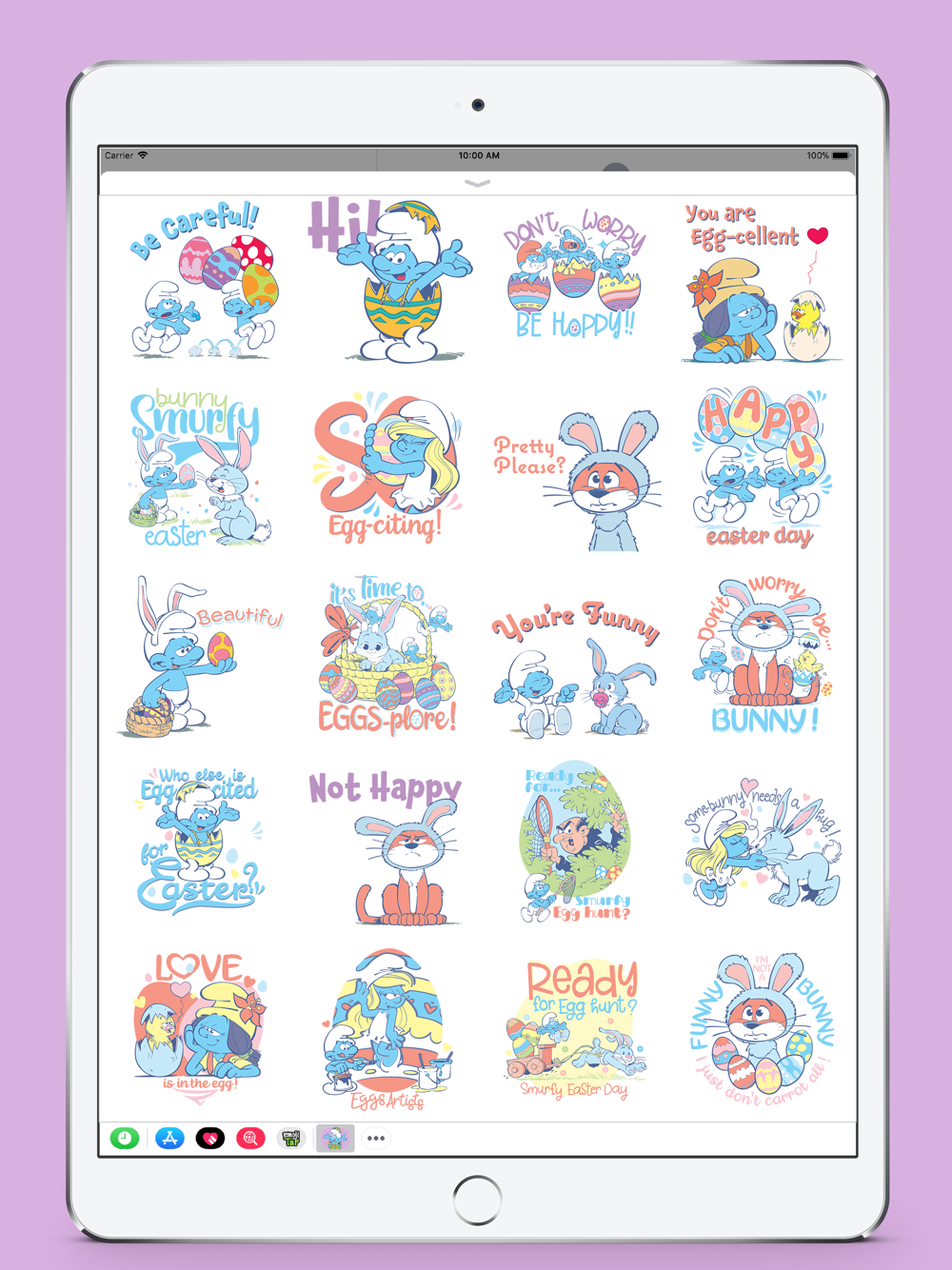 The Smurfs Easter Messaging Sticker Pack is a delightful collection of vibrant and charming digital stickers featuring everyone's favorite blue characters, the Smurfs, celebrating the