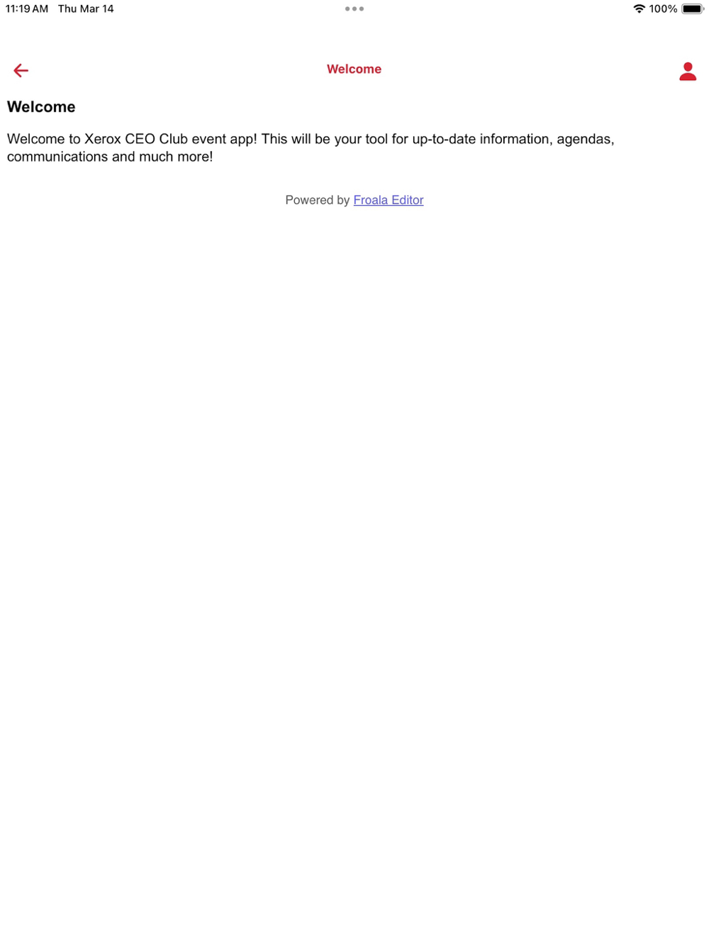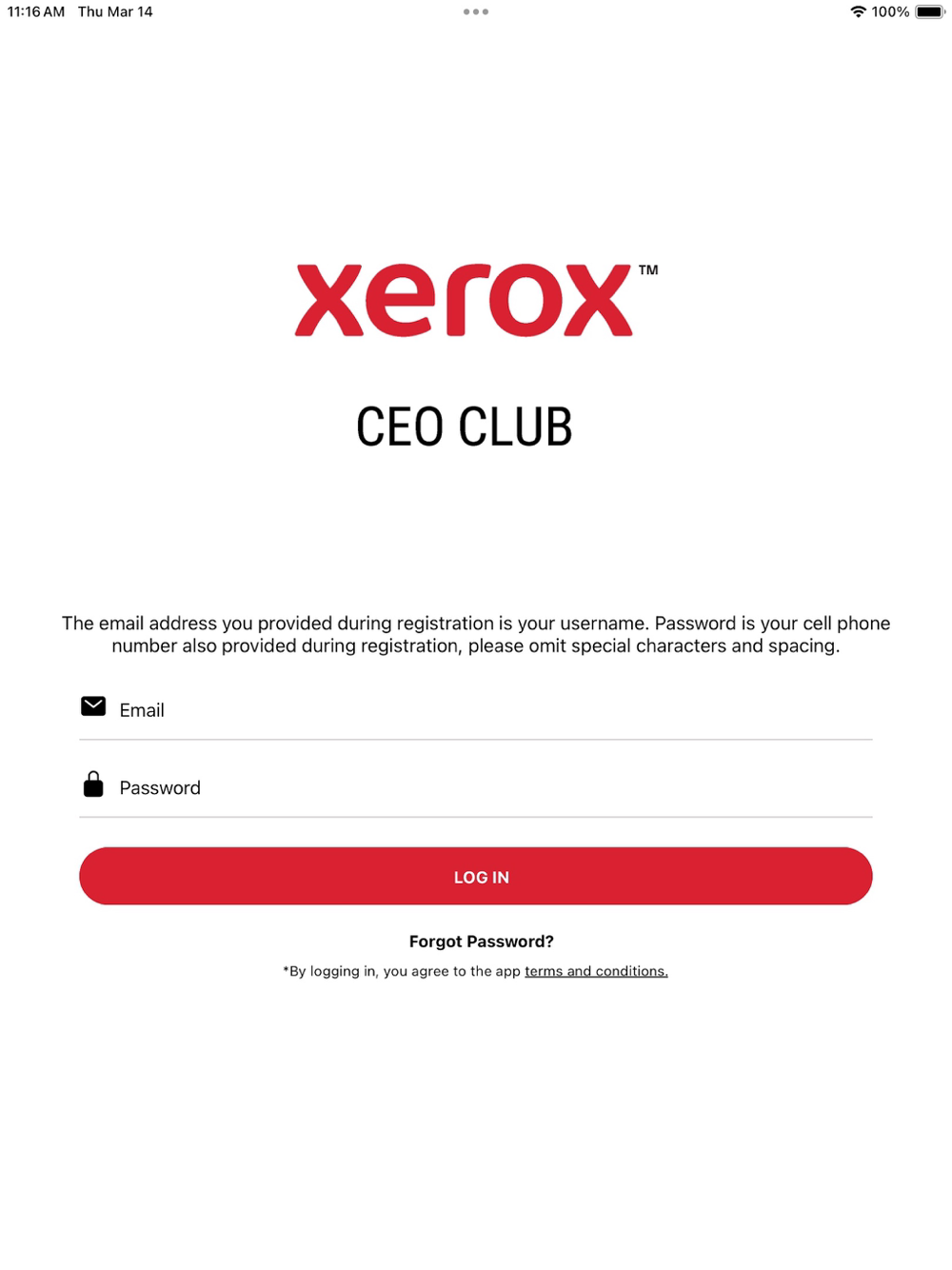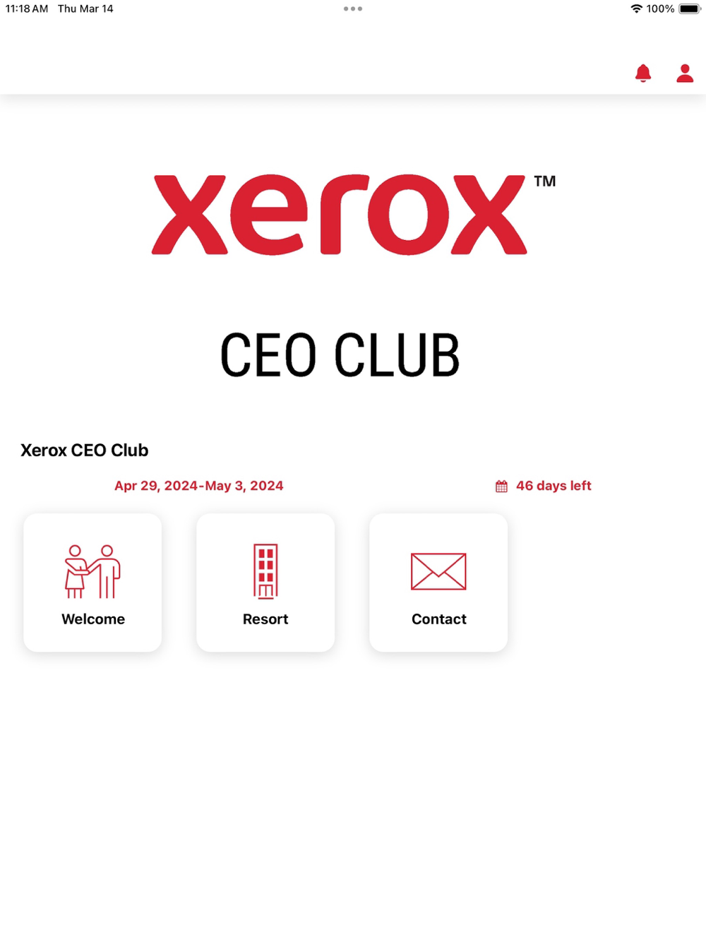 Welcome to the Xerox CEO Club EventAPP! This app will be your tool for up-to-date event information, engagement and communications for the Xerox CEO Club.