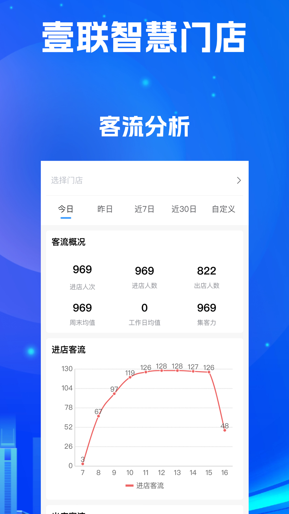 壹联智慧门店是一款融合大数据、智能软件和硬件相结合,在线管理查看门店的相关信息,在线监控管理、在线布防、客流分析、热力分析、在线考评、巡查统计等功能,实现店铺互联网化、数据化、电子化的消费管理和营销服务平台。