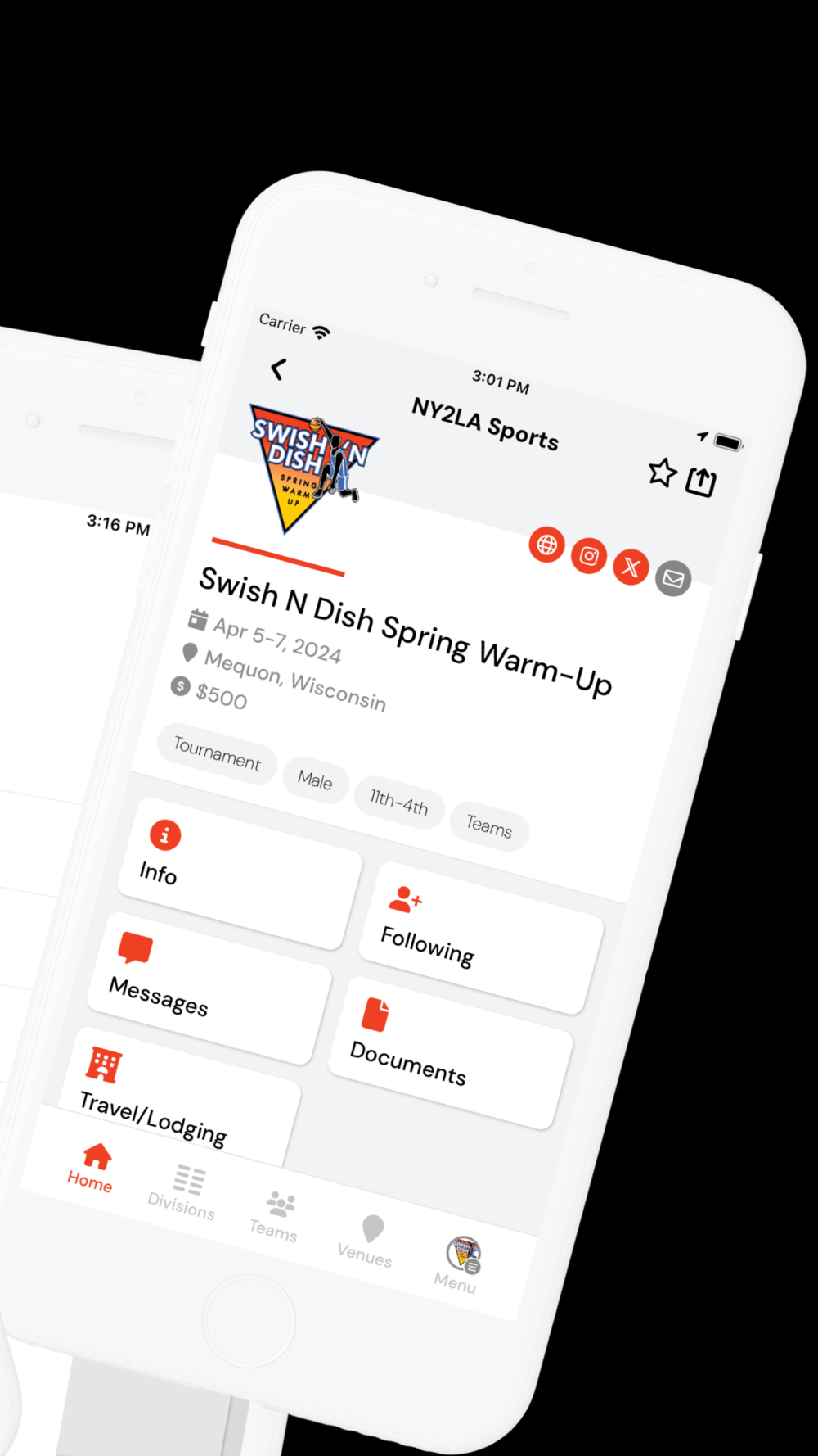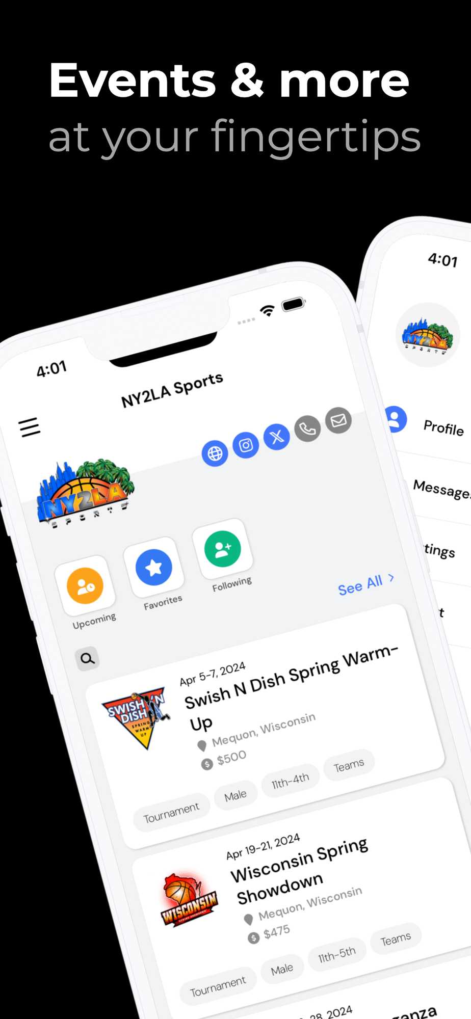 The NY2LA Sports app is your all-encompassing guide for sporting events, meticulously crafted to cater to the needs of team and college coaches, media, players, parents, and fans. Designed to bring every essential aspect of the event to your fingertips, this platform ensures you stay connected and well-informed.