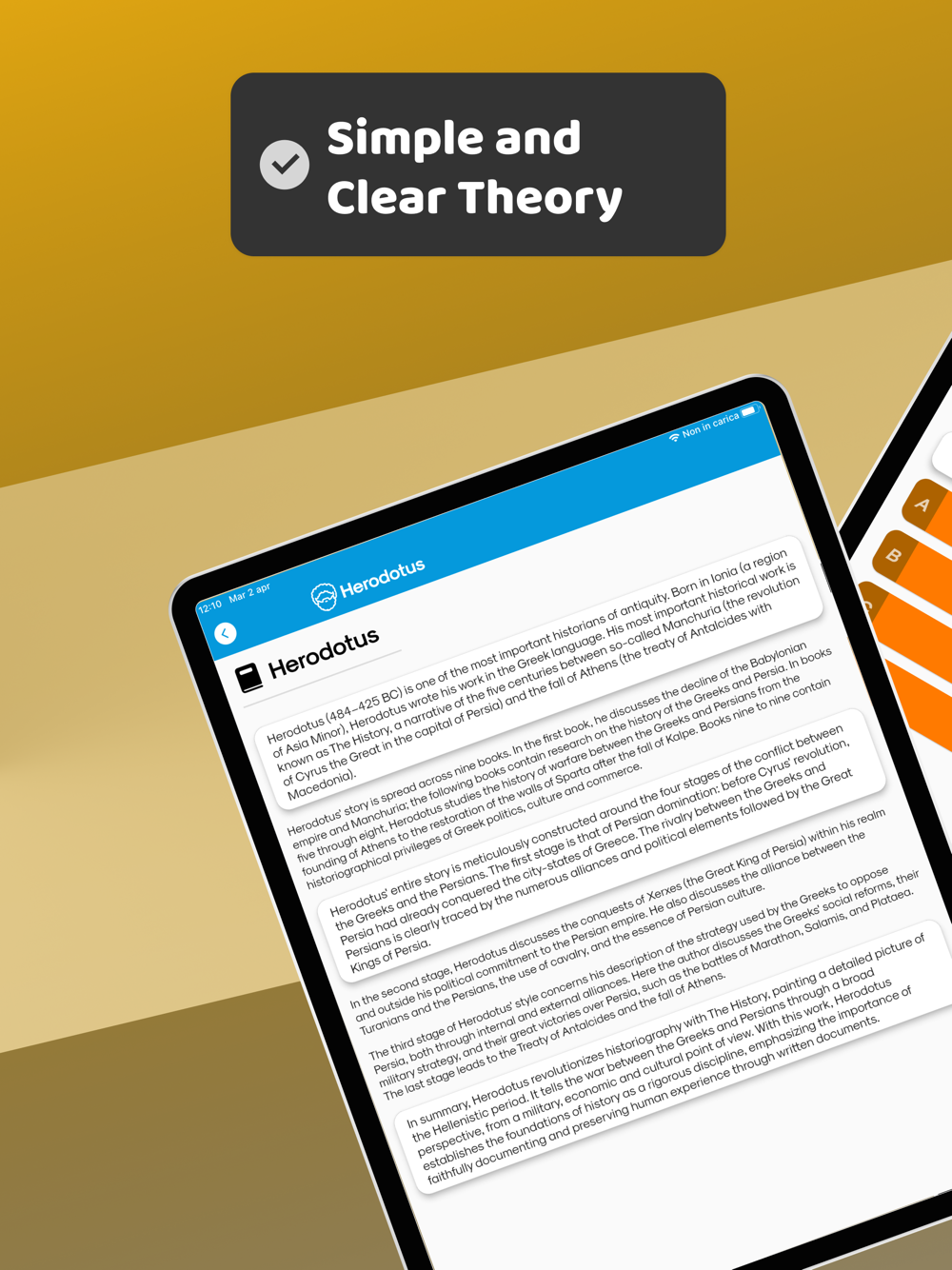 Explore and Test Your Knowledge: Immerse yourself in thousands of interactive quizzes that will test your knowledge of Greek literature. Tackle stimulating questions about Homer, Hesiod, Greek lyricism, and classical historians, measuring your understanding and deepening your passion for this rich literary tradition.