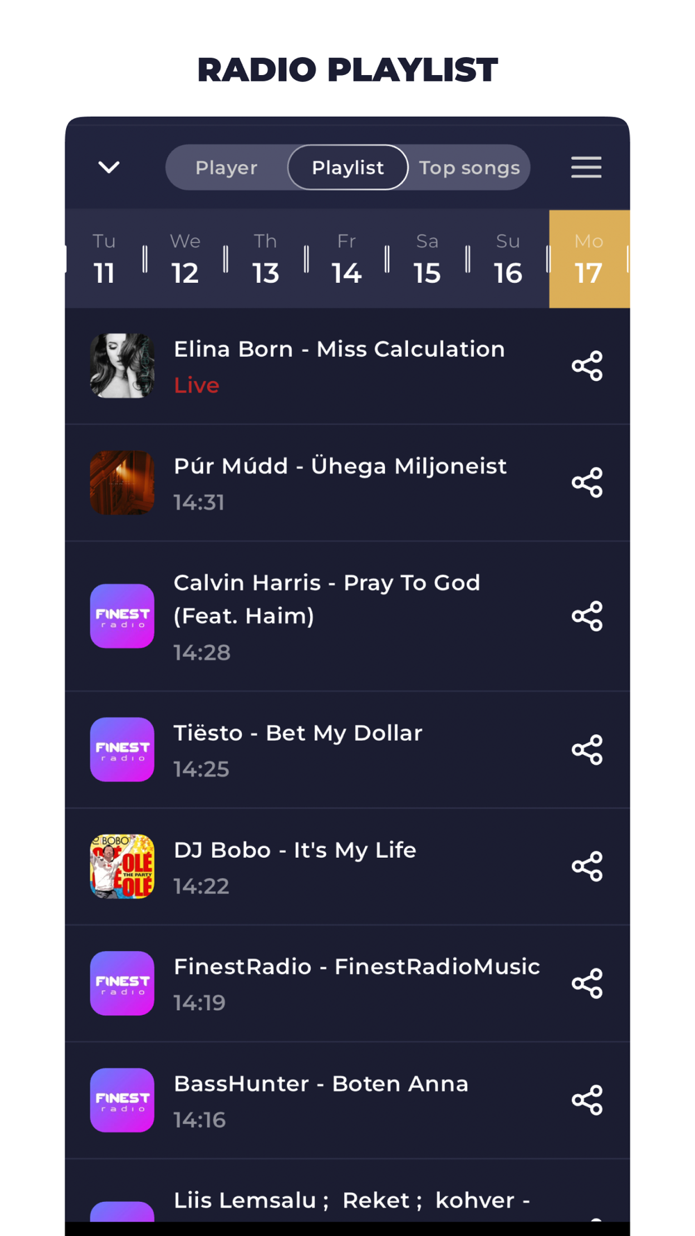 Radio station playlists – view the latest songs played on each station.