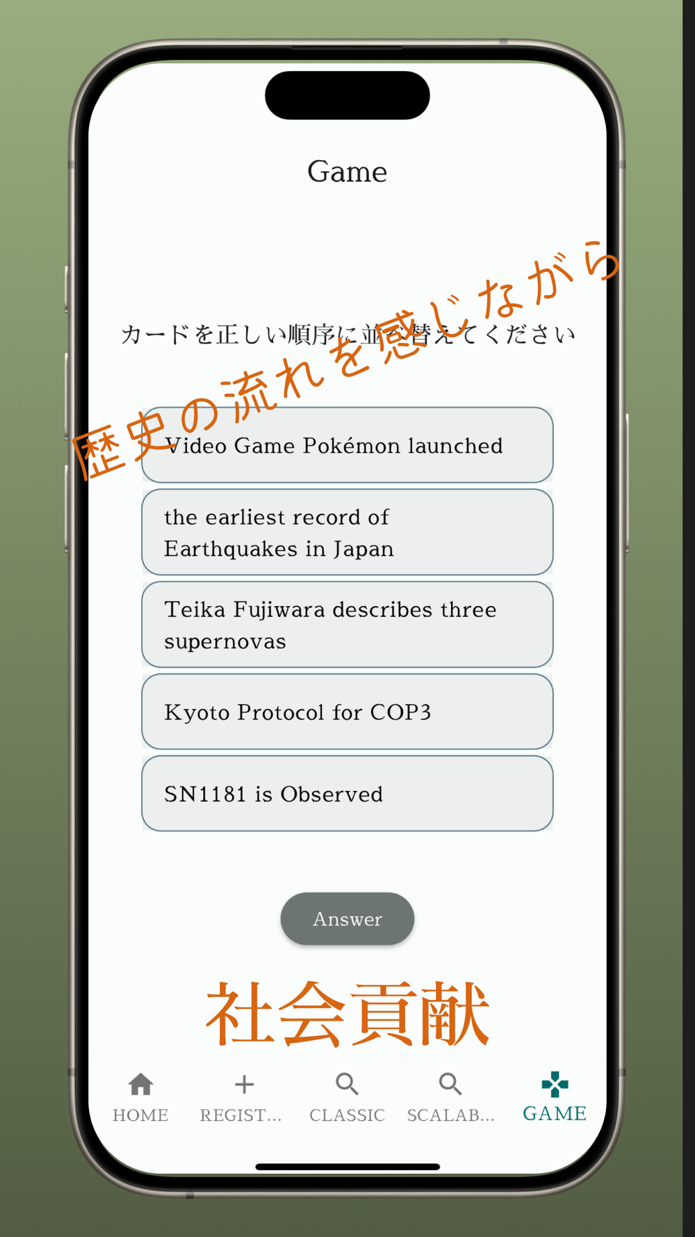 "四次元年表" is a project where users collaborate to build a database that encompasses all historical events, from the origins of the universe to the endless "now", regardless of the field. It aims to accurately display both temporal and spatial distances by making "where" as important as "when".