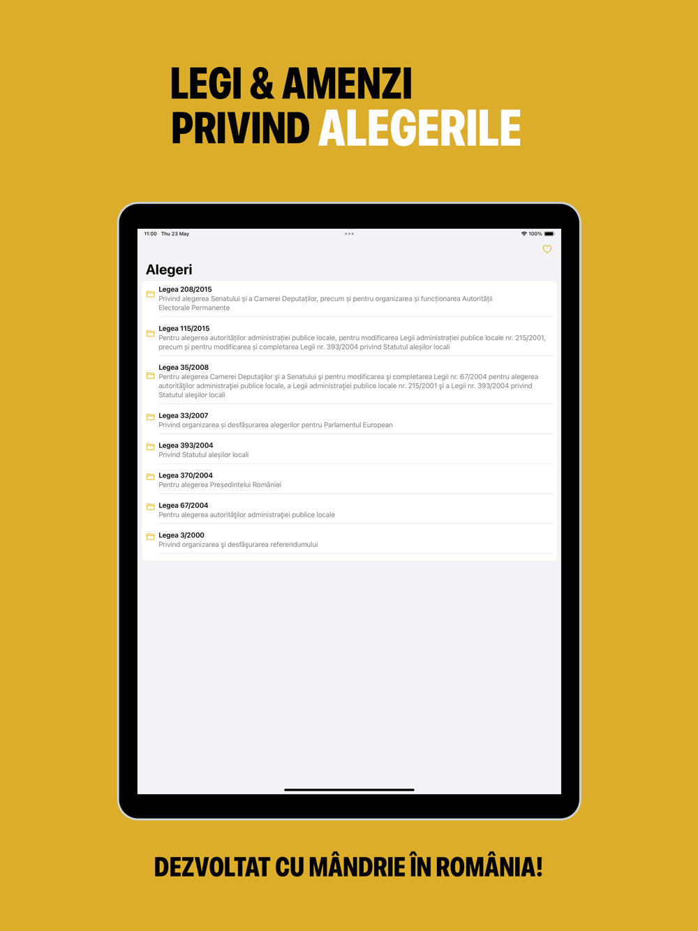 Explorează legislația într-un mod convenabil și accesibil cu aplicația Alegeri: Legi & Amenzi, care îți pune la dispoziție Prevederile, Contravențiile, Sancțiunile, Amenzile și Textele complete ale legilor privind alegerile electorale din România.