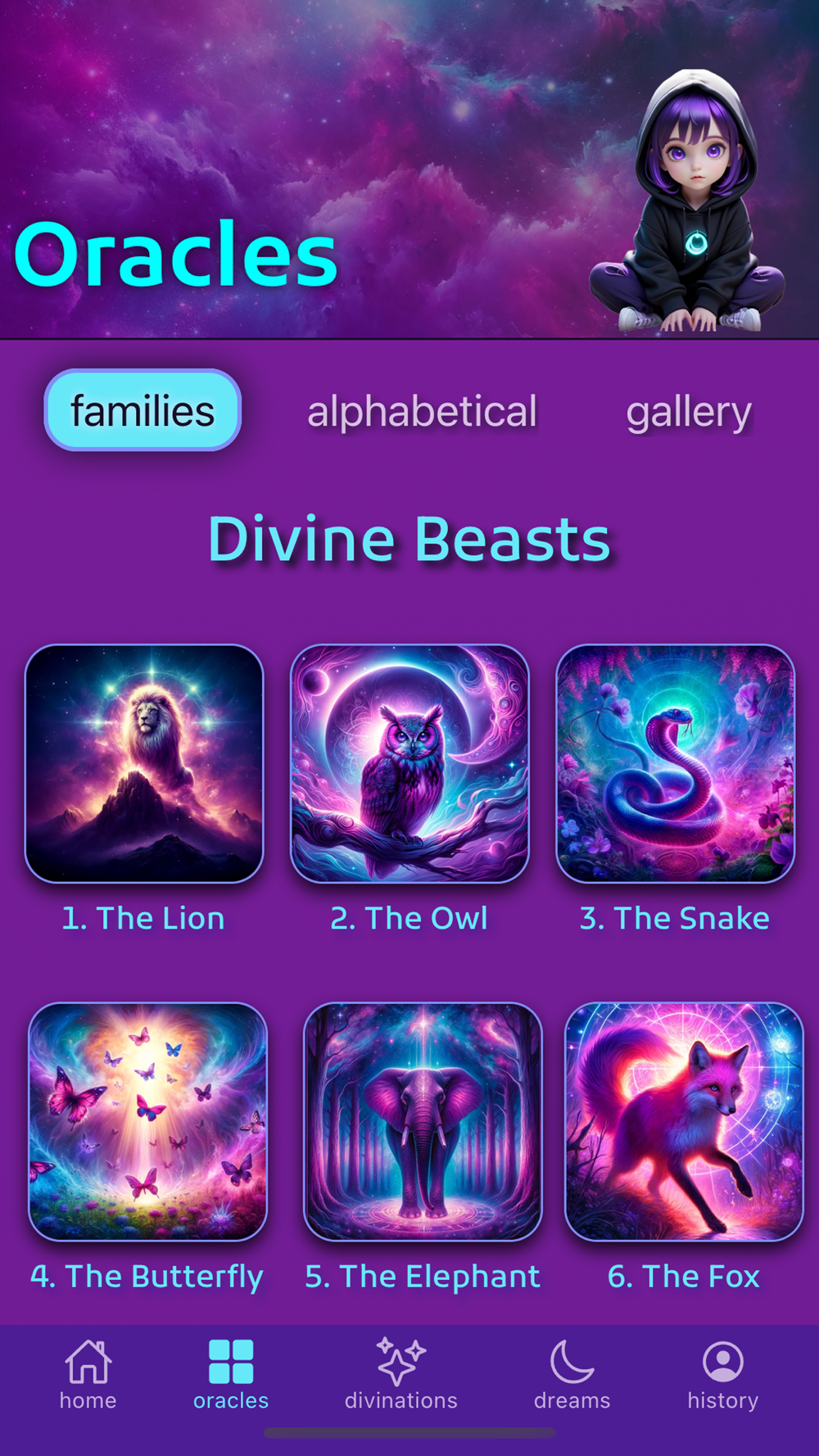- Guided by Dark Violet: The mysterious Dark Violet interprets the oracles' messages, offering her own profound insights. Subscribe to the Unlimited plan to access multi-card readings for deeper understanding.