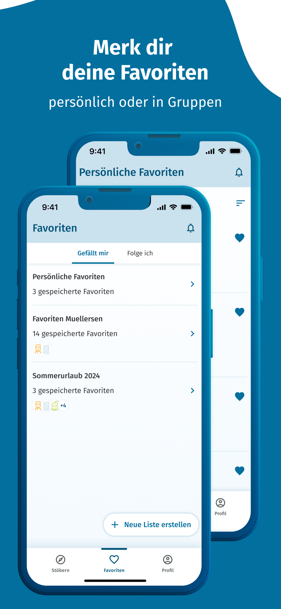 Persönliche Favoritenlisten: Speichere interessante Angebote in deiner eigenen Liste oder teile sie mit Familie und Freunden.