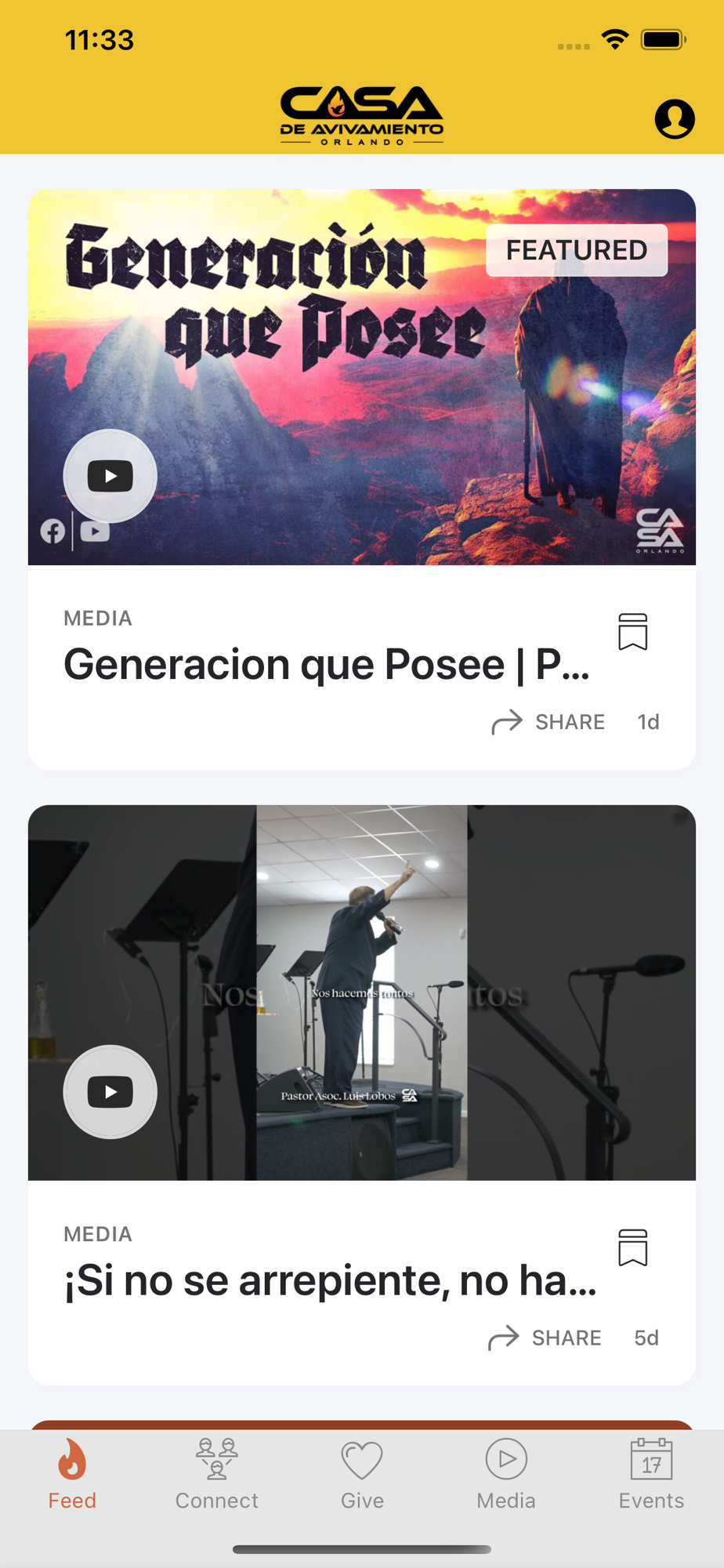 ¡Conectate al App de Casa de Avivamiento! ¡Podrás ver los próximos eventos, dar, leer la Biblia y más!