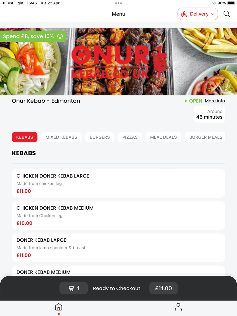 Order Turkish Kebab for delivery and collection directly via the Onur Kebab app.