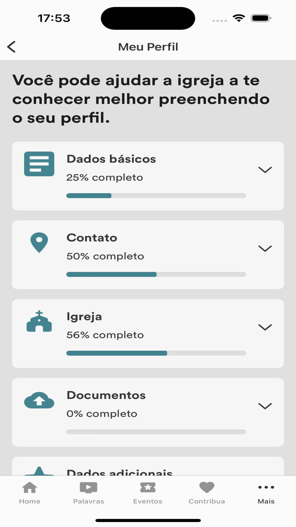 - Conecte-se com a igreja através dos grupos de interesse, receba conteúdo direcionado e obtenha sua carteirinha exclusiva.